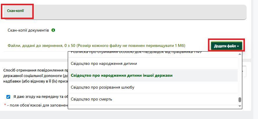 - або в електронній формі, онлайн – через Портал Дія у складі комплексної послуги «єМалятко» або через вебпортал електронних послуг Пенсійного фонду України.