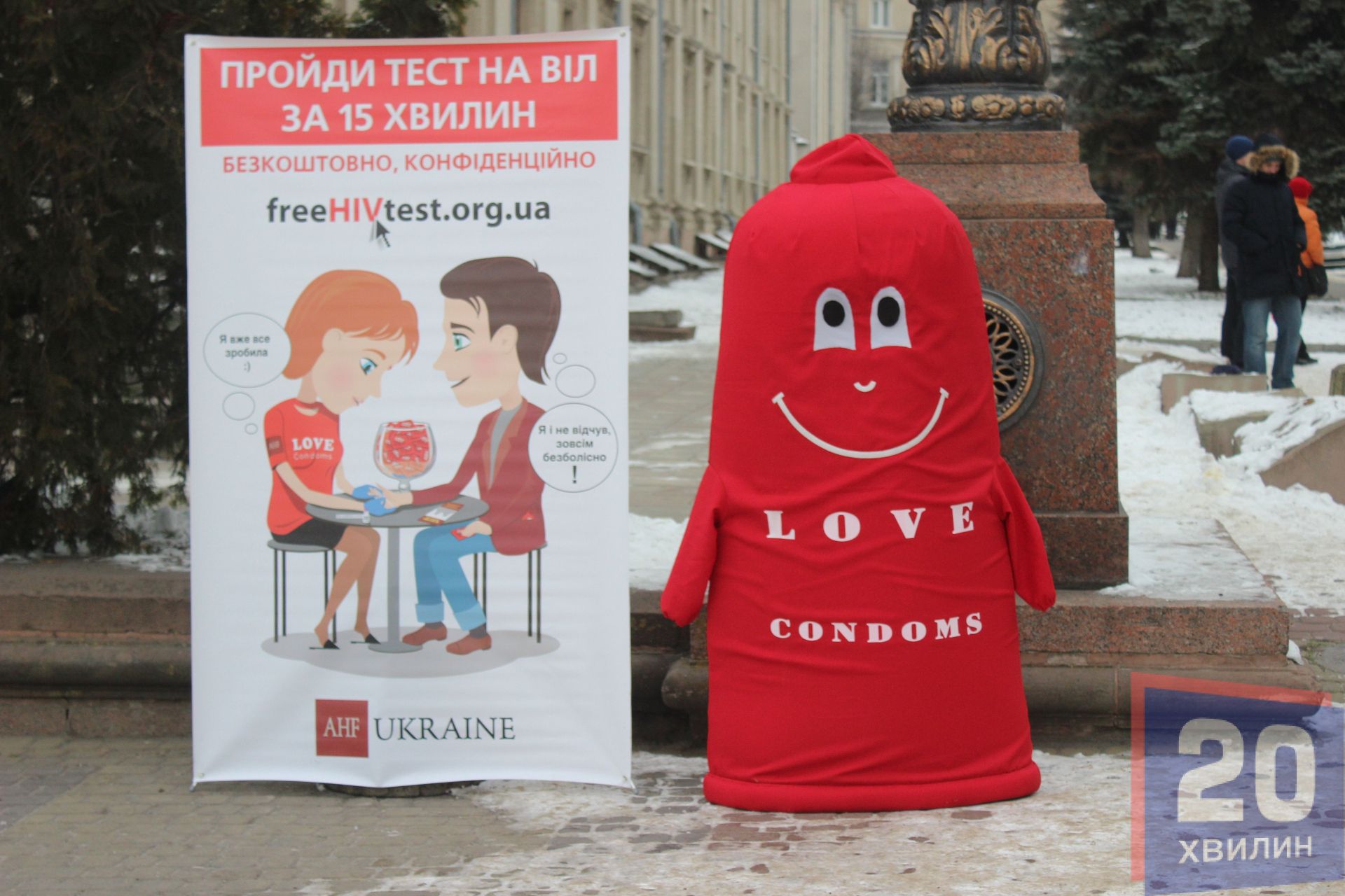 Просто на Театральному майдані тернополян консультують, роздають інформаційні буклети та презервативи. Також є пересувна амбулаторія, де за кілька хвилин можна зробити тест.