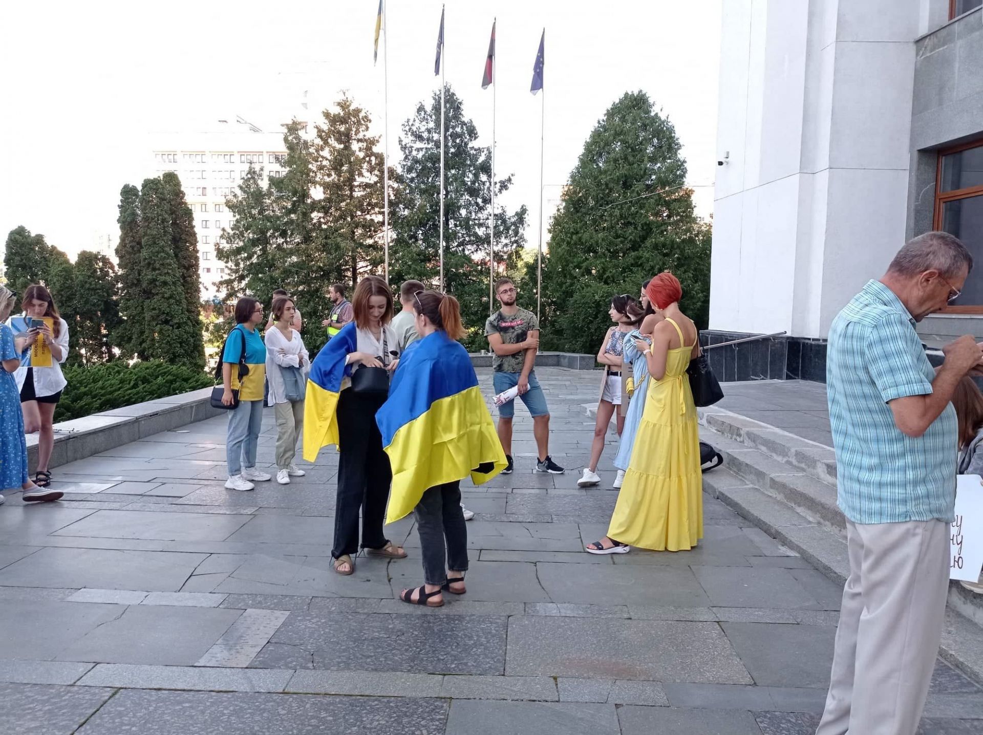 Мирний мітинг біля ОДА почався сьогодні, 26 серпня о 8:30. Учасники вимагають заборонити діяльність московського патріархату.
