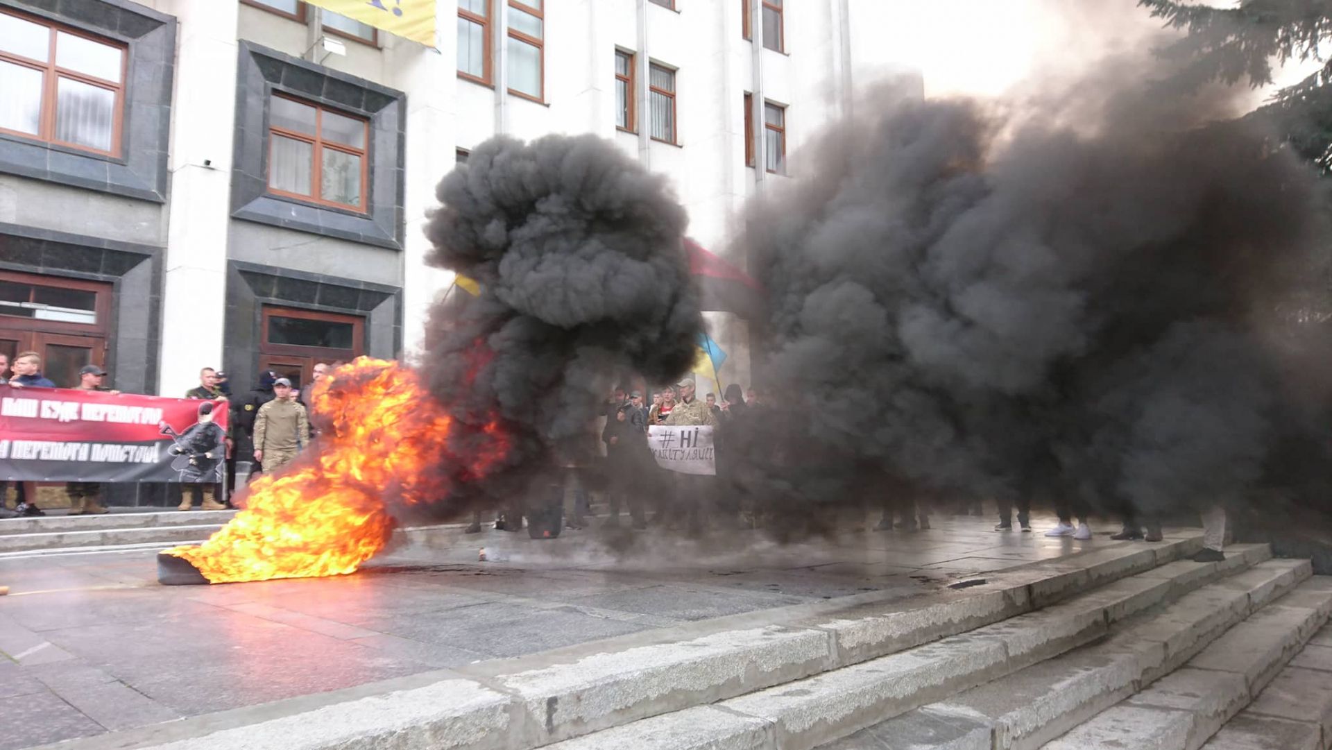 Своє звернення до депутатів активісти зачитали під палючі шини. Передали його депутатам і додали, що обов'язково простежать за тим, щоб всі за нього проголосували.