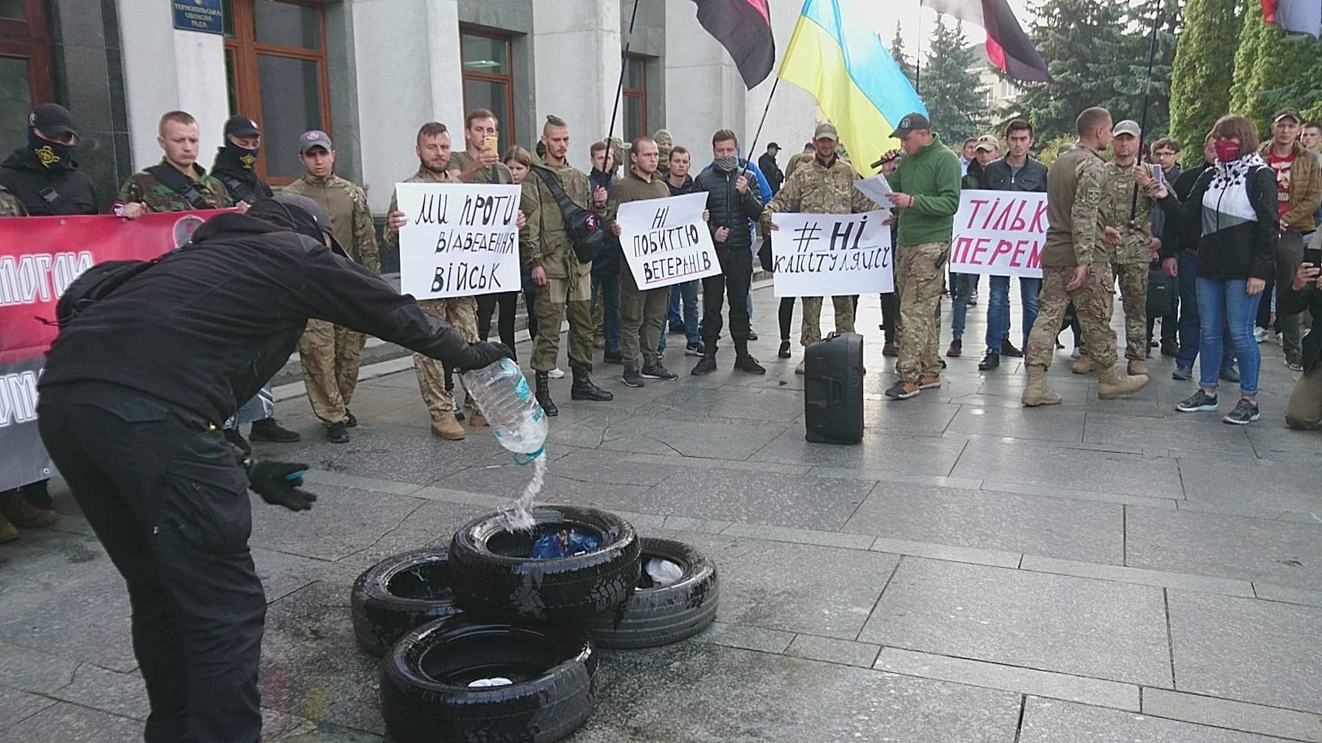 Проти капітуляції, проти відведення військ, особливого статусу, переговорів у нормадському форматі. За виконання Будапештського меморандуму, зміцнення армії та за припинення дипломатичних та економічних відносин з Росією. З такими вимогами під стіни Тернопільської ОДА прийшли ветерани 26 вересня.