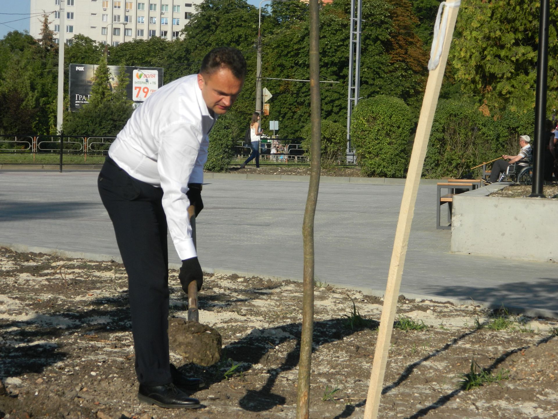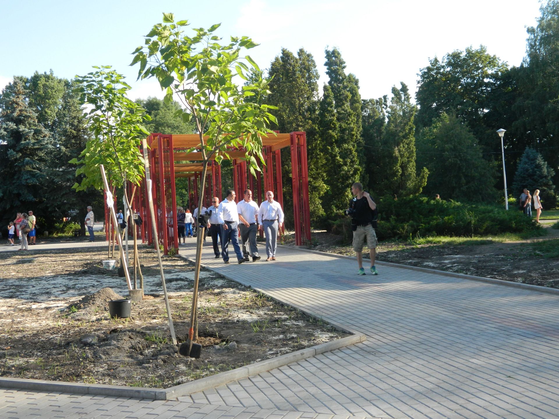 Загалом, урочисту частину з виступами розпочали о 18.00. Її мужньо витримали під палючим сонцем школярі, зодягнуті у костюми. Час від часу зупинялись перехожі, аби розпитати, що то за концерт. А потім з’явились і представники влади – міський голова з колегами, майже відразу взявшись за лопати та катальпи.