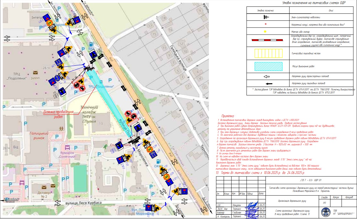Товариству також погодили часткове перекриття дороги на вул. Морозенка, згідно з тимчасовими схемами організації дорожнього руху на період від 10 до 24 червня 2025 р.