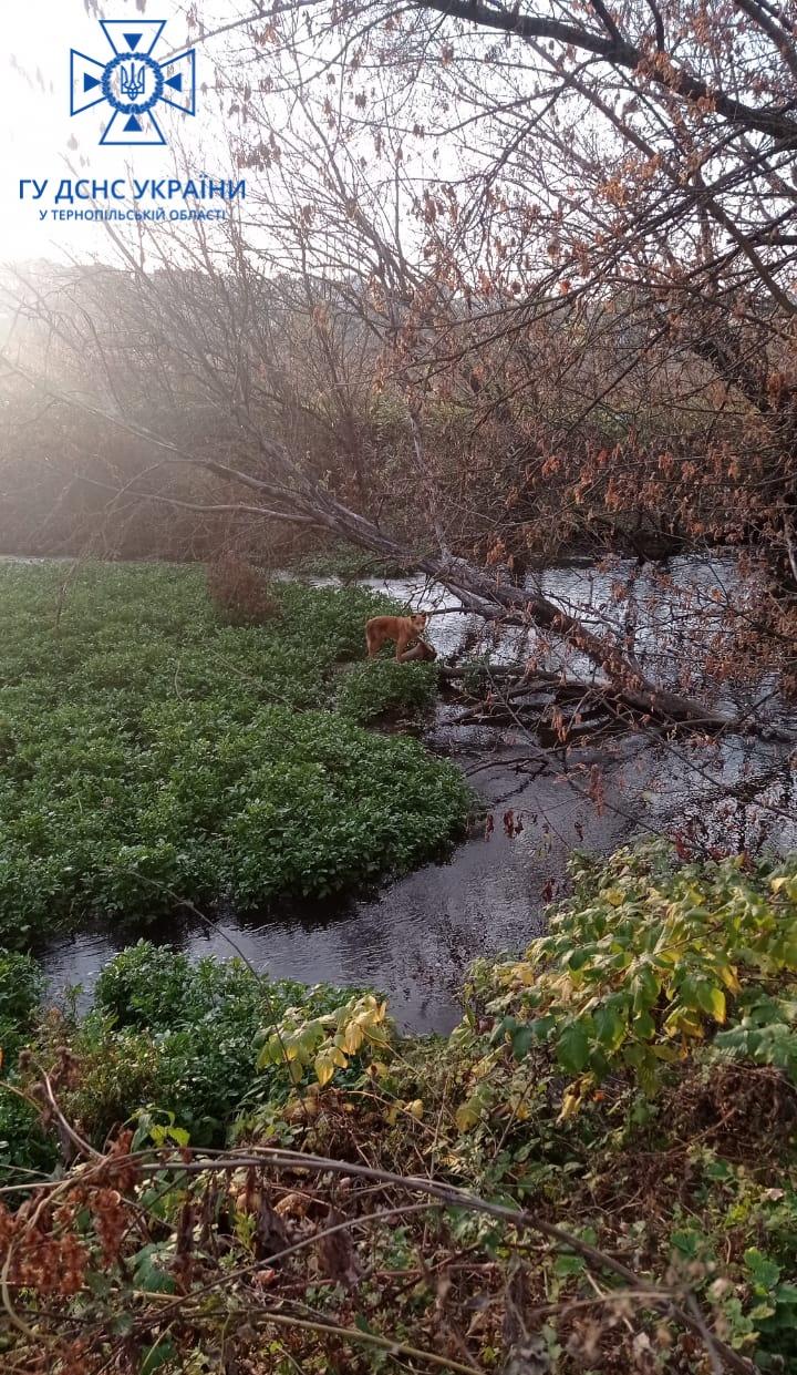 1 листопада о 15 год 46 хв надійшло повідомлення, що у с.Байківці собака шість днів знаходиться на острівці річки Гніздна і не може самостійно вийти на берег.