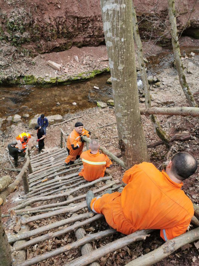 Під час виконання робіт в каньйоні поблизу водоспадів обладнали безпечний спуск із поручнями, а також встановили попереджувальні знаки у травматично-небезпечних місцях.