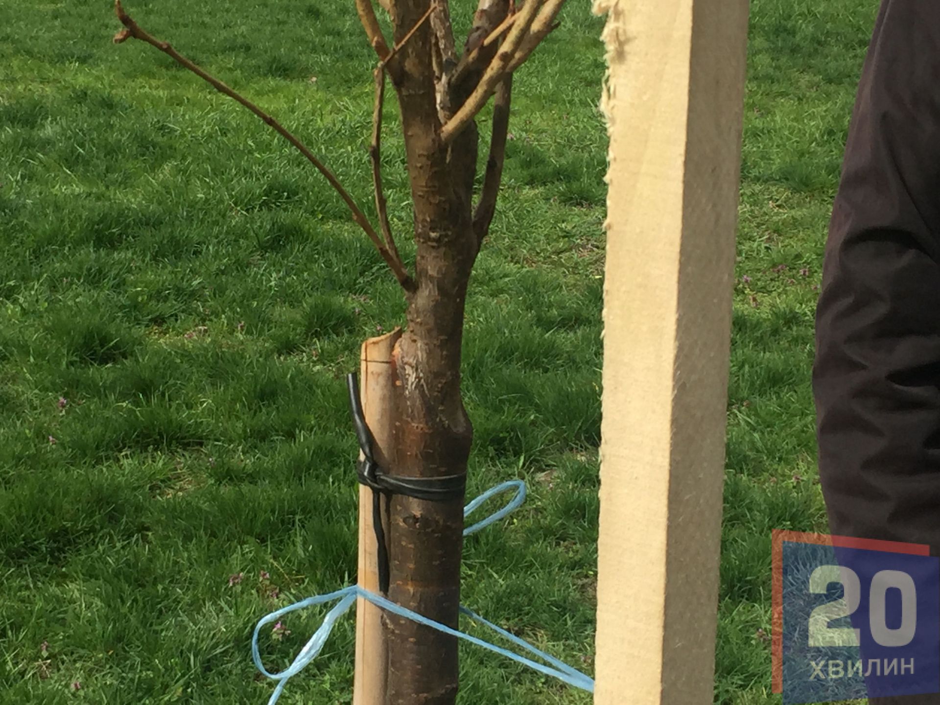 Десять саджанців сакури привезли на замовлення японців з Одеси. Там саджанці вирощували в спеціальних умовах під пильним наглядом фахівців. Щоб дерево краще прижилося до наших умов, верхівку японської сакури прищепили до стовбура української вишні.