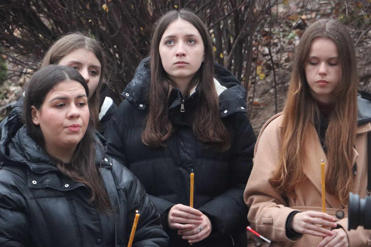 Тернополяни зібрались на місці ворожого удару, щоб вшанувати пам'ять загиблих внаслідок російської атаки 19 листопада. Разом зі священниками місцеві моляться за спокій невинних душ.