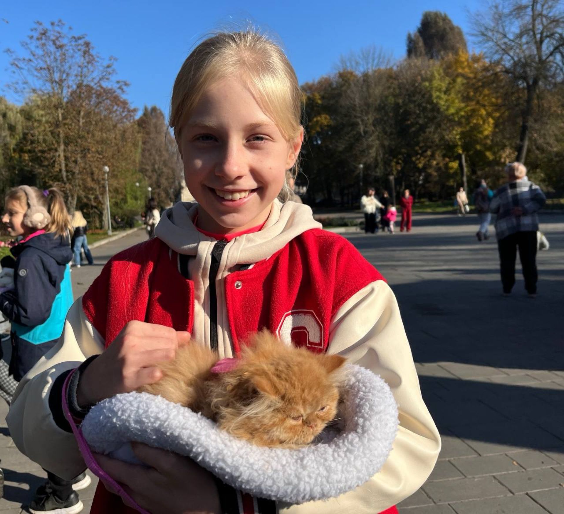 – Йода – перська кішка. Вона грайлива, позитивна. Я захотіла долучитися, а мама і бабуся мене підтримали. Спеціально взяла тепленьку переноску, щоб їй було комфортно. А також є у нас рожевий повідець з крильцями янгола. Я вірю, що вона не злякається, – наголошує Катерина.