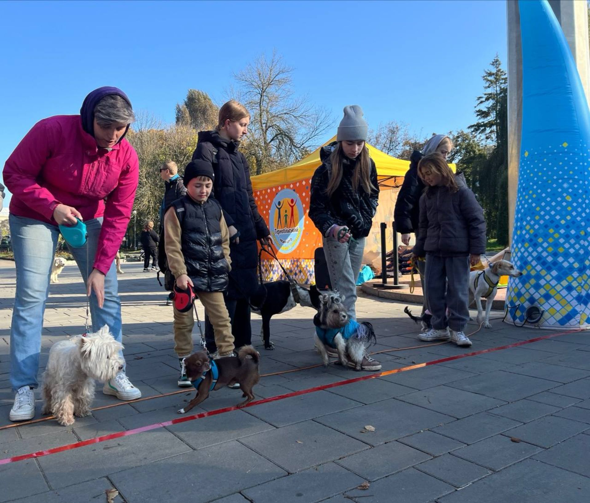 – Побачили інформацію про проведення такого цікавого заходу і вирішили долучитися. У нас активна собачка, вона не лякається інших тварин, не агресує. Для нашої родини такий захід більше не про розвагу, а про допомогу. Тут збирають кошти на корм для безпритульних котів та собак, які переїхали з інших регіонів, – каже пані Лілія.