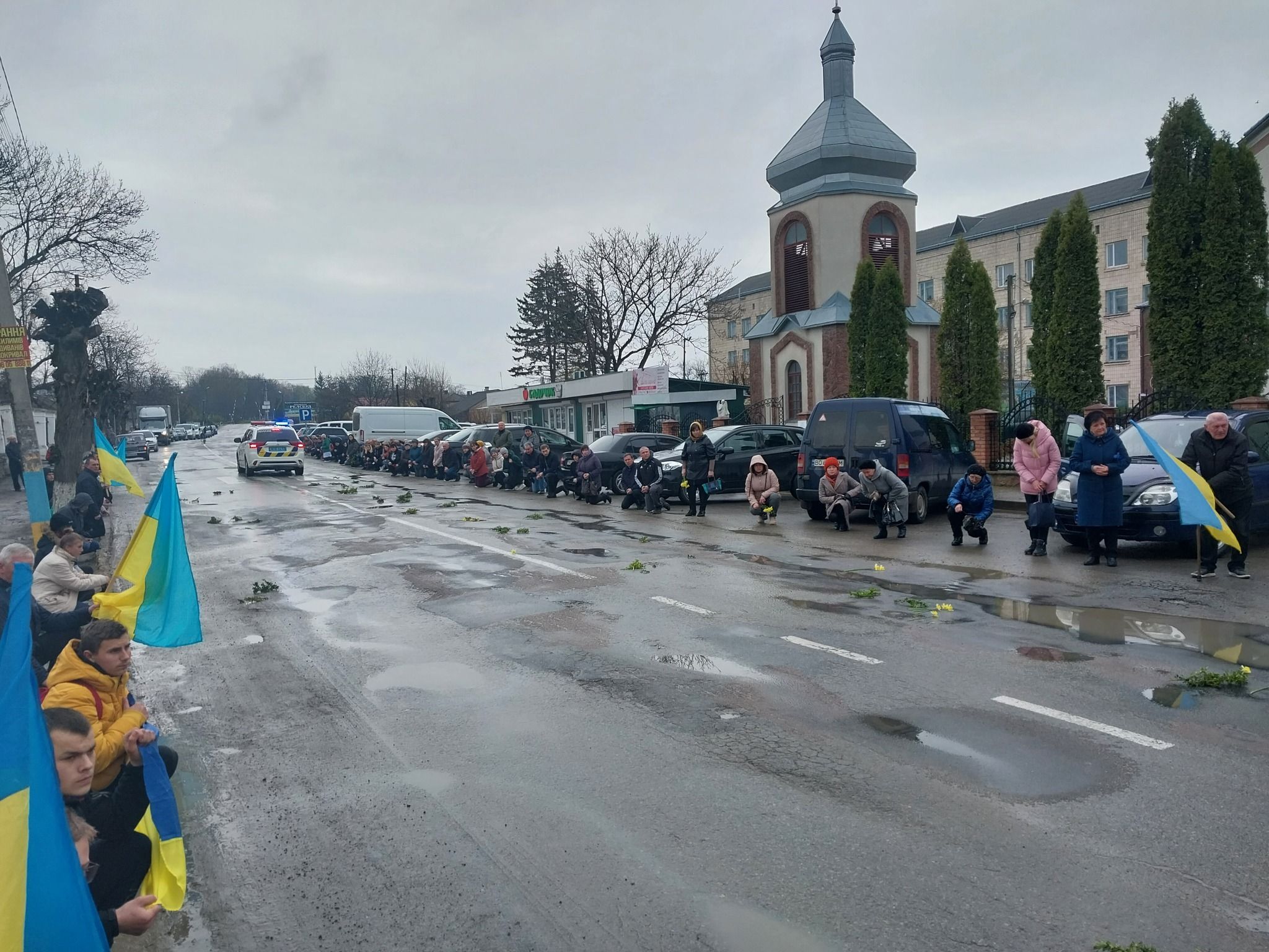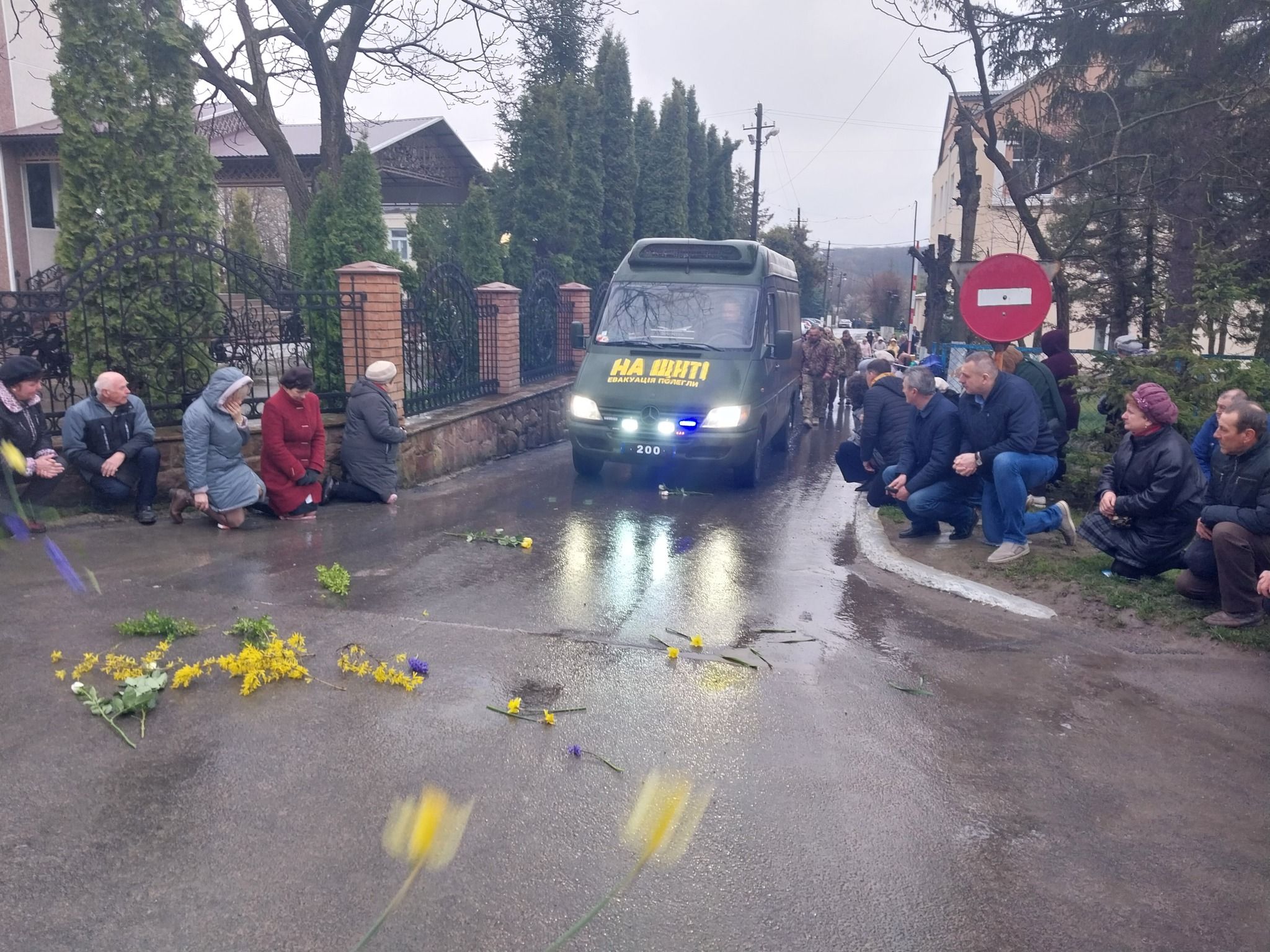 Борщів’яни на колінах із квітами та державними прапорами зустріли тіло померлого захисника.