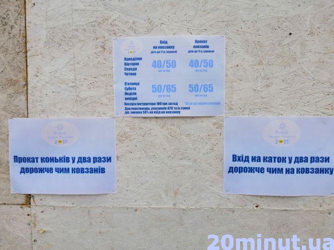 Прокат ковзанів для дітей до 11 років у будні дні - 40 гривень, а для дорослих 50. У вихідні для дітей -50 гривень, а дорослим доведеться заплатити 65 гривень.
