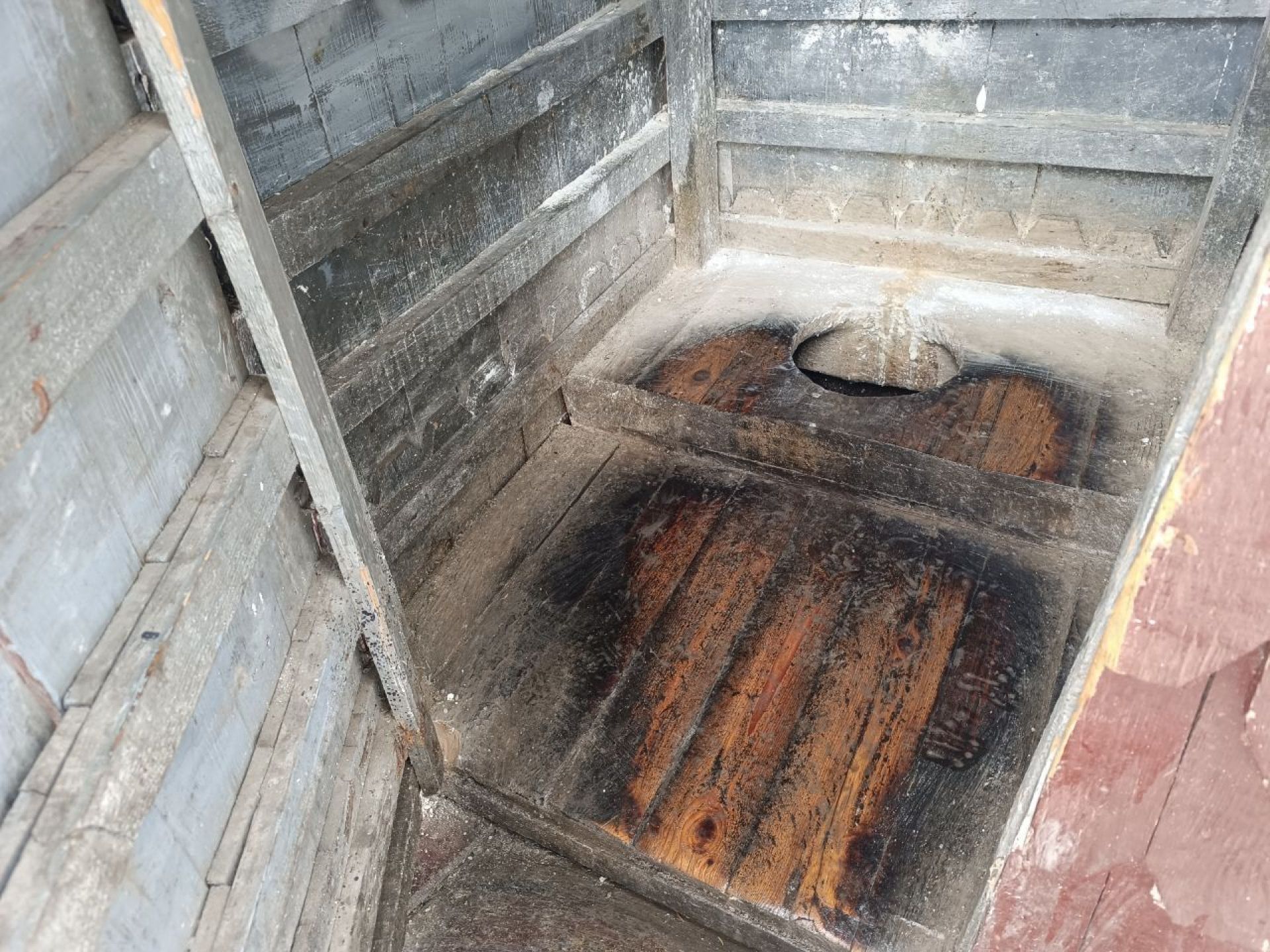 У «Сопільче» є ще один вуличний туалет, неподалік атракціонів. Дерев’яна «будка» похилилась, на дверях замість ручки – провід.