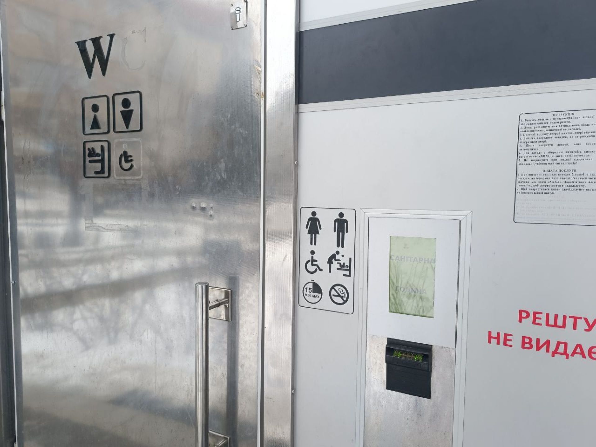 У Туалеті є дві кабінки. Одна – пристосована для людей з інвалідністю. Вхід в туалет коштує 5 гривень.