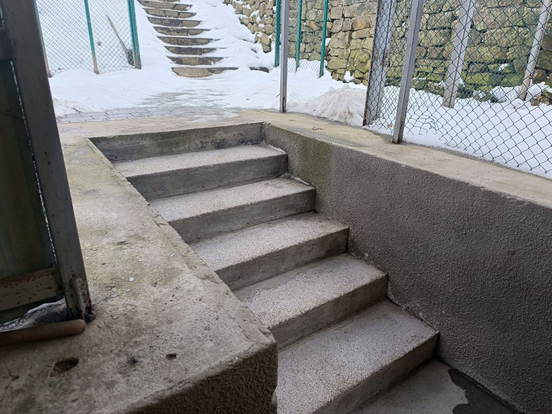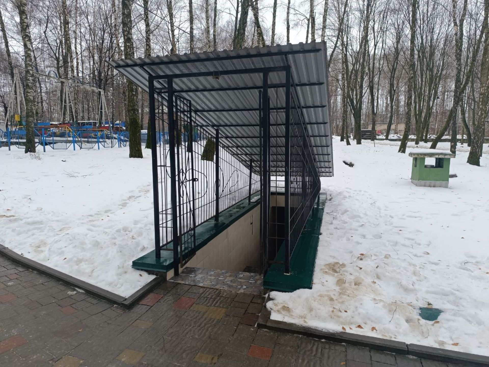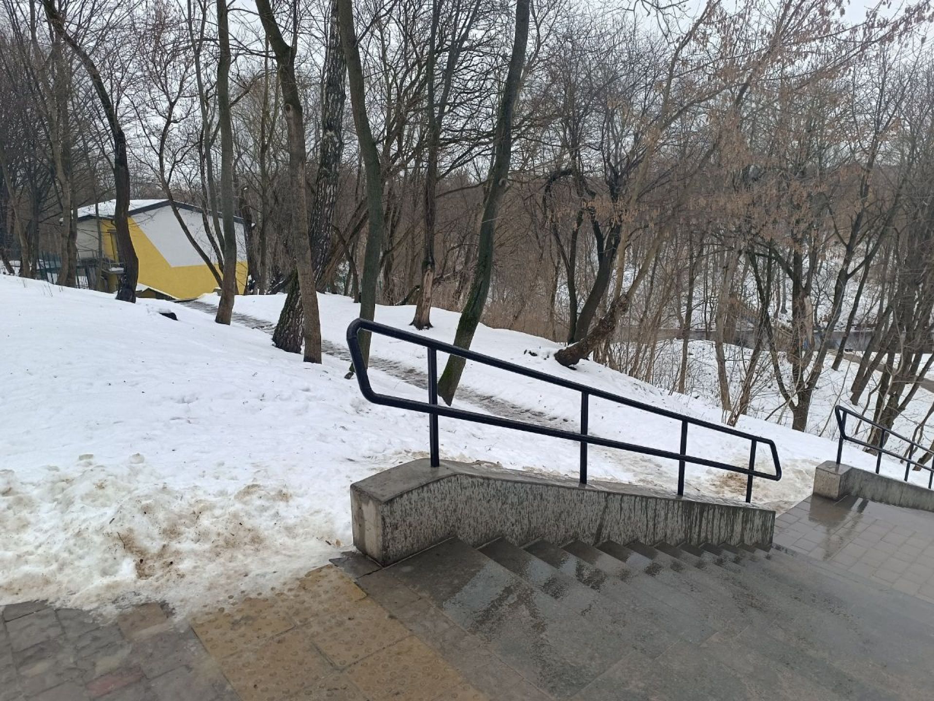 Туалети у парку Національного відродження також не пристосовані для людей з інвалідністю. Вони розташовані у підвальних приміщеннях, тож щоб скористатися – треба спуститися сходами. Біля дверей ми побачили оголошення з проханням зачиняти двері, щоб через мороз не замерзла вода в трубах.