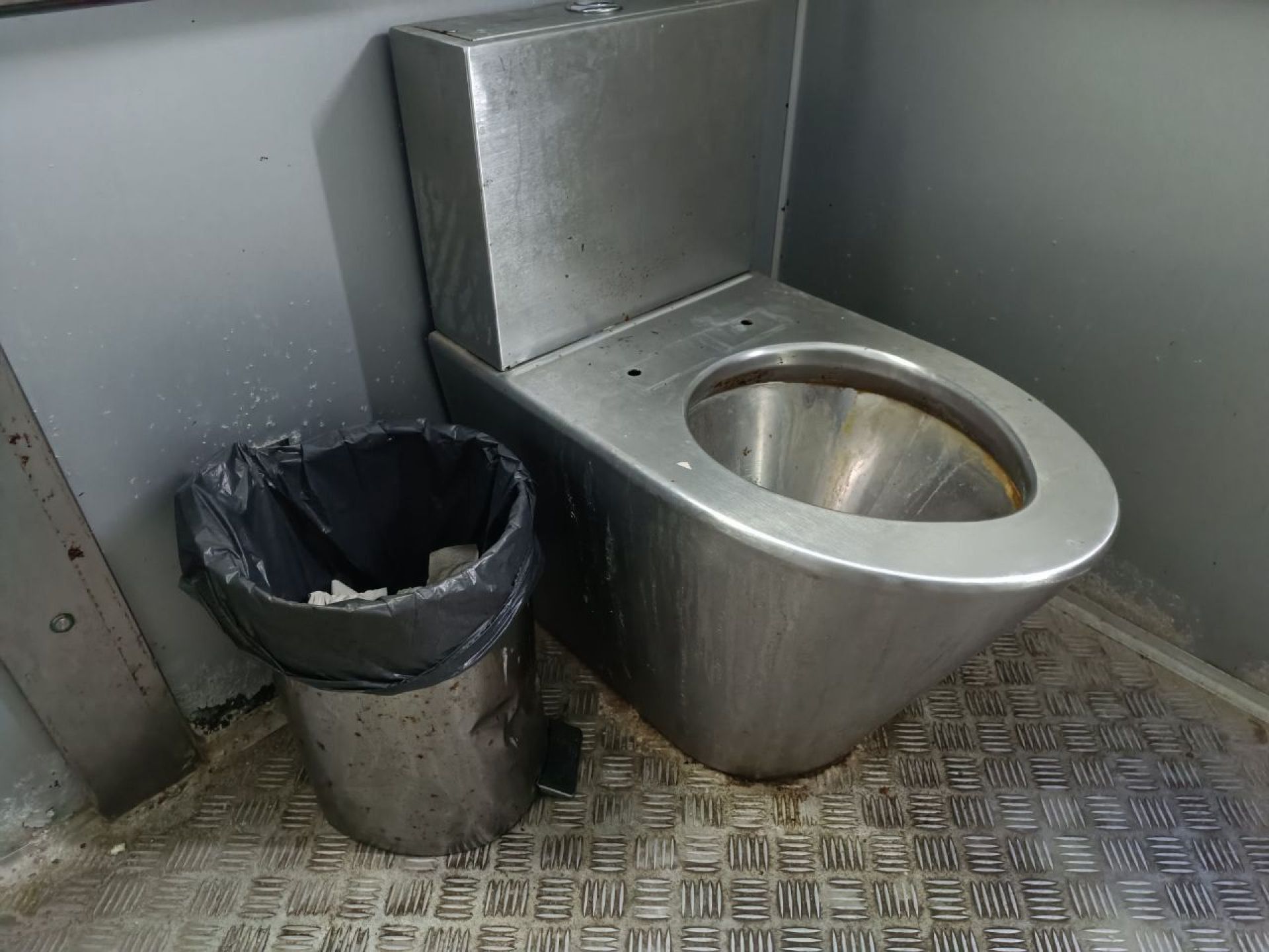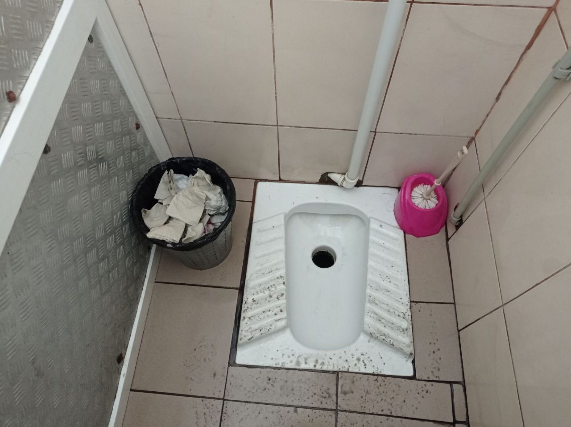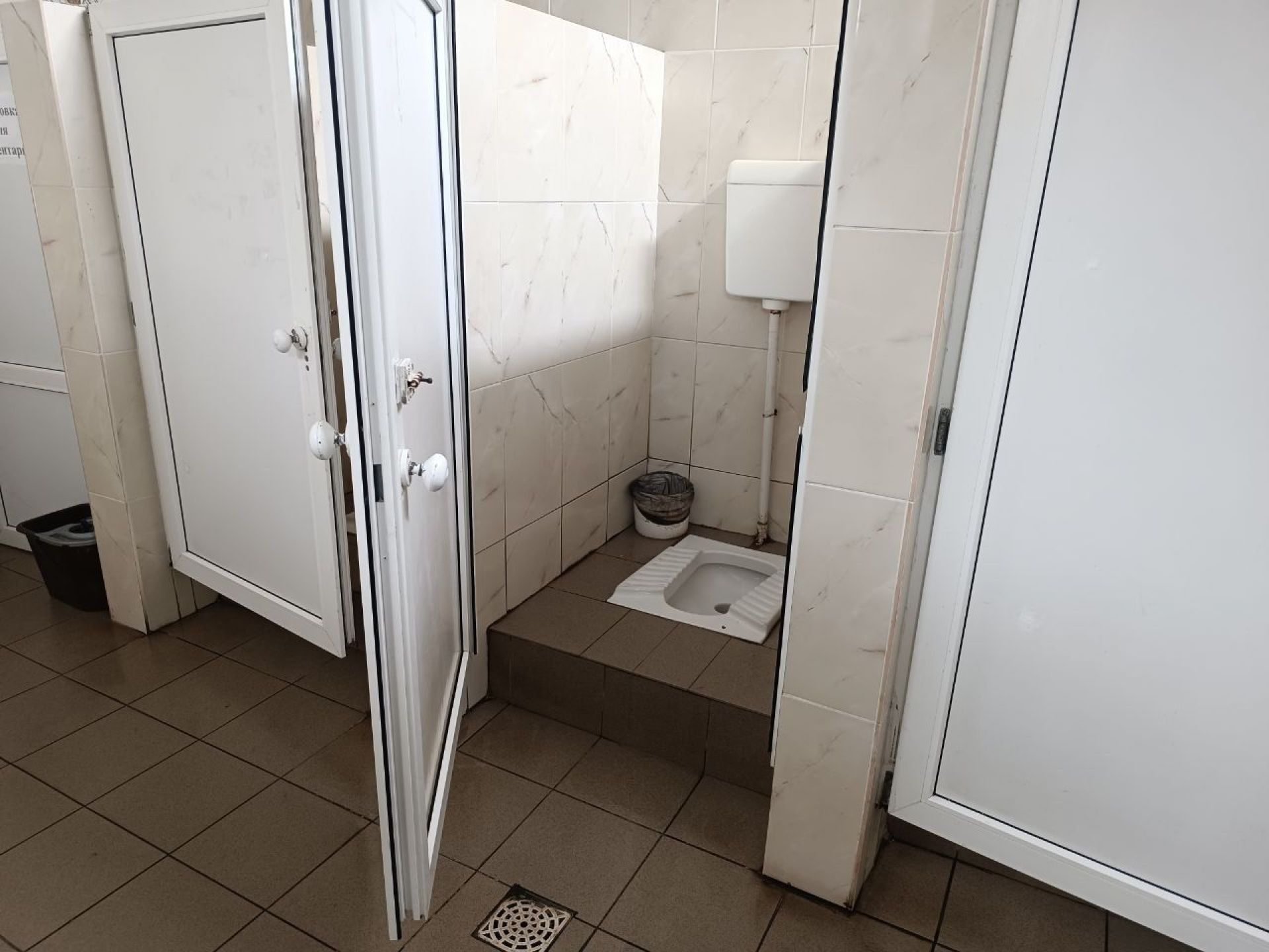 У крані є вода, також було мило. Працювала лише одна лампочка, тож всередині досить темно. У приміщенні відчутно неприємний запах та сирість, але підлога та туалети були чисті.