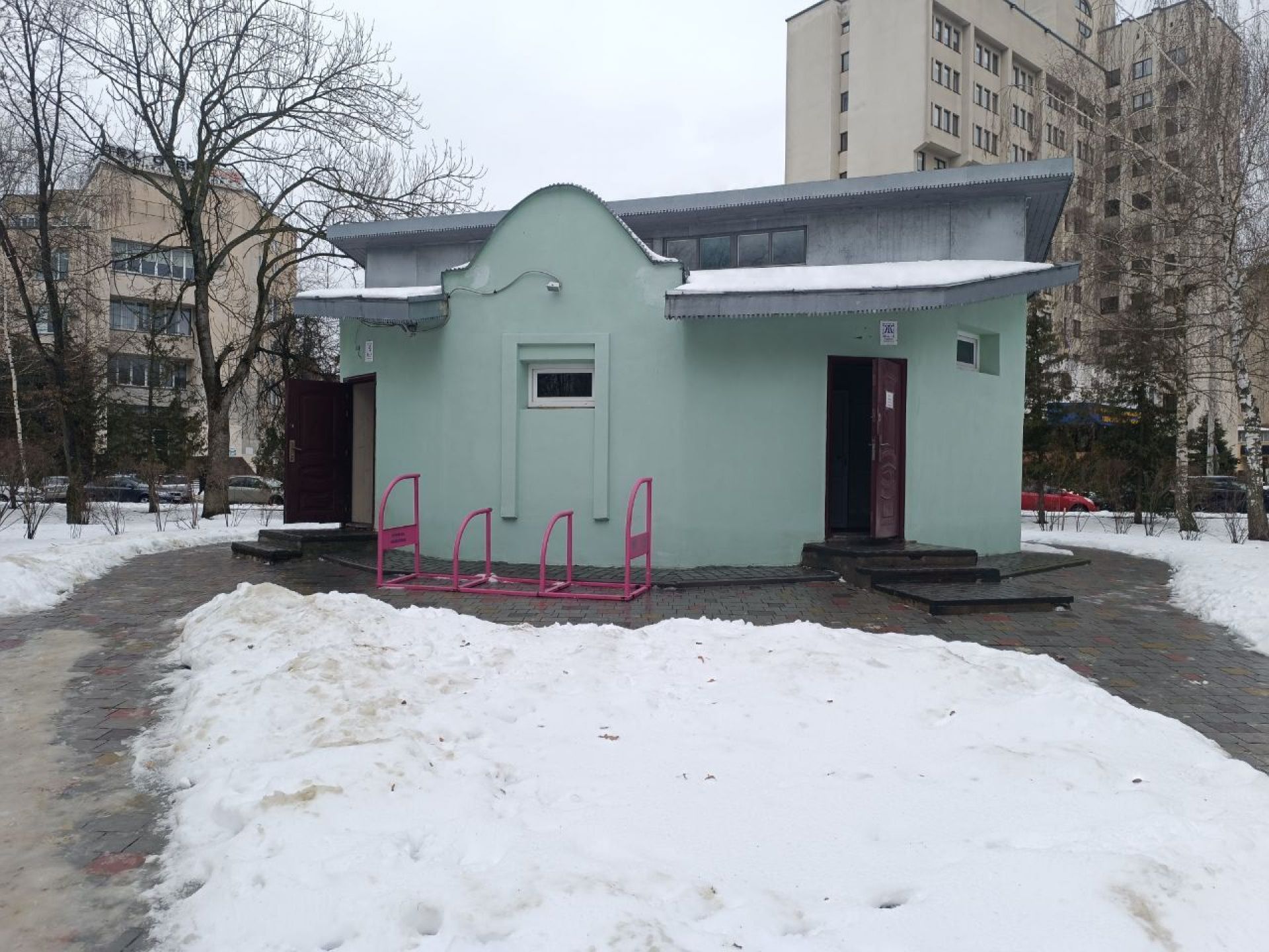 У парку «Здоров’я» є туалет, який пристосований для людей з інвалідністю. Під час наших попередніх оглядів там був зручний заїзд, простора кабінка. Біля унітазу – спеціальний поручень. Також дві кнопки виклику допомоги. Це платна вбиральня, щоб скористатися нею – потрібно заплатити 5 гривень. Однак наразі туалет не працює. Журналісти «20 хвилин» побачили оголошення, що туалет не працює в зимовий період.