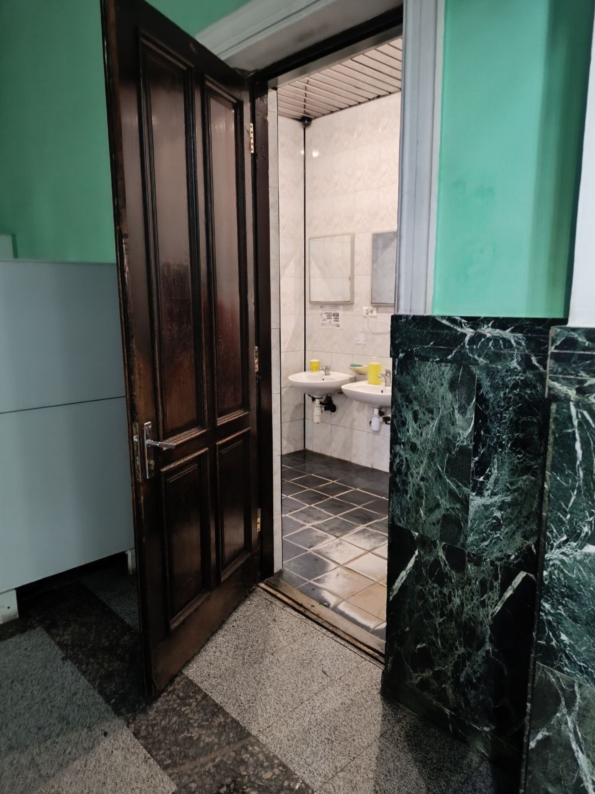 Всередині в кабінках звичайні туалети. Також є вода та брусок мила. Хоча туалет розташований у підвальному приміщенні – там не було сиро. Не відчувається неприємного запаху. Підлога була чиста.