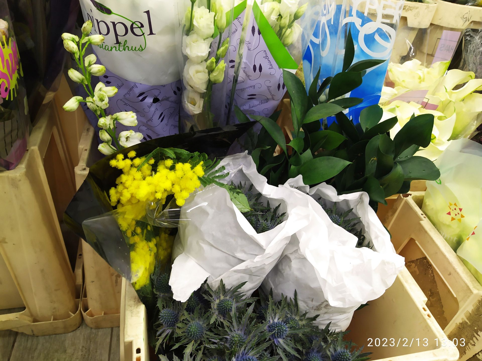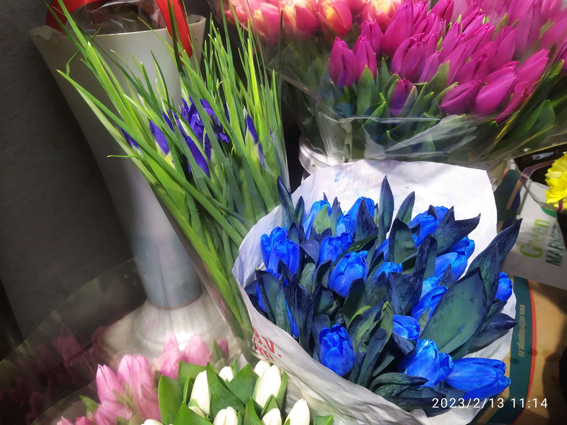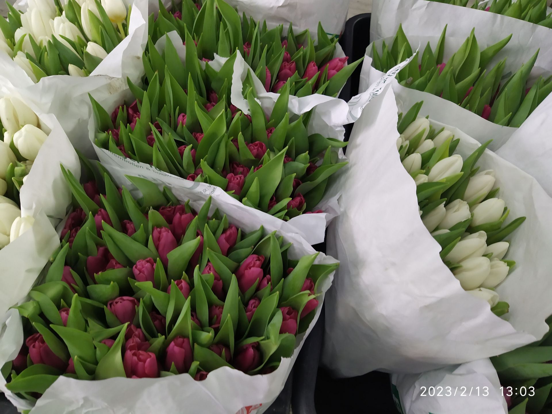Спускаючись від «зеленої церкви» до квіткового ринку зранку 14 лютого, журналіст побачив лише пару продавчинь. У них були букетики підсніжників та тюльпанів.