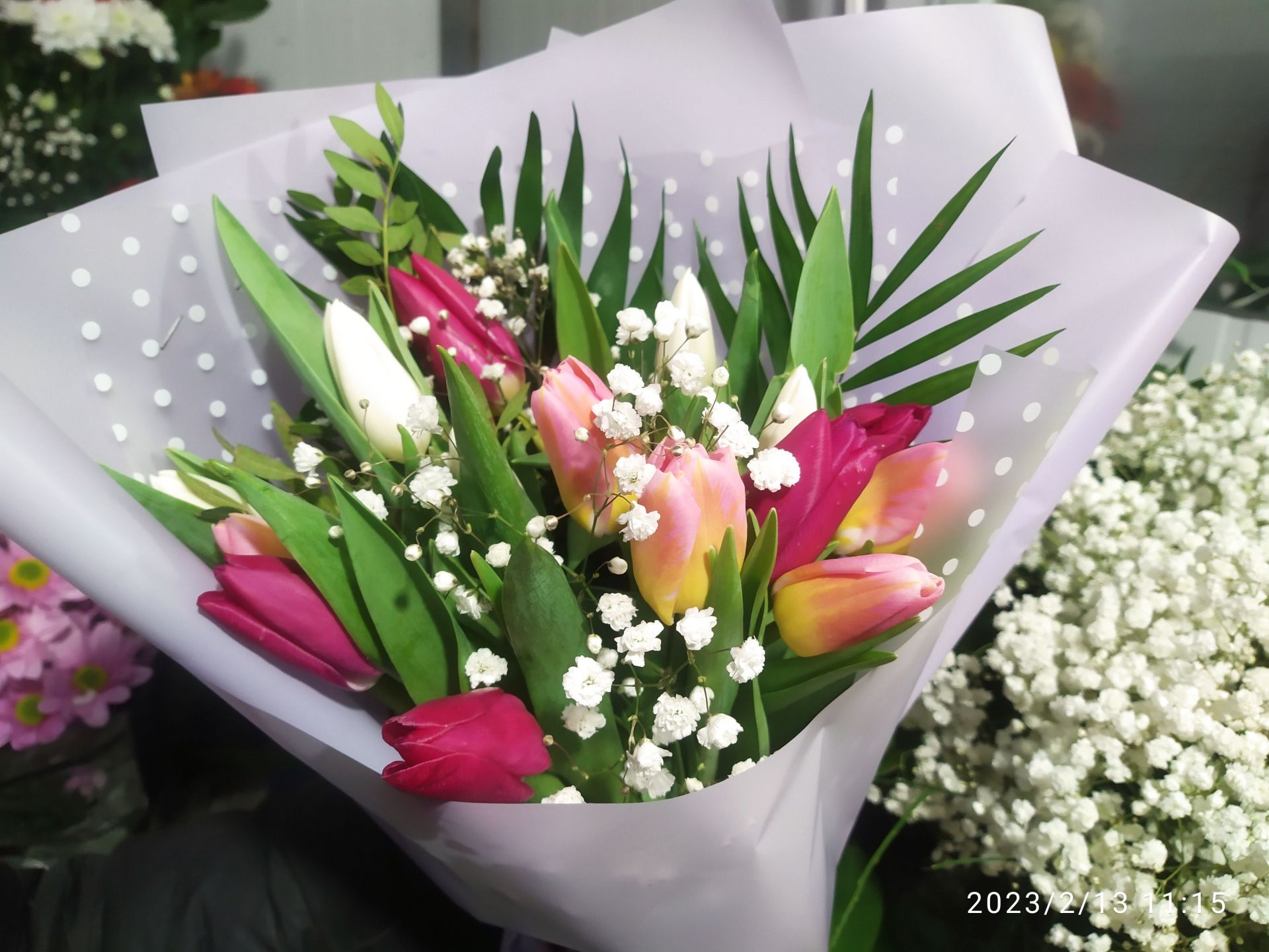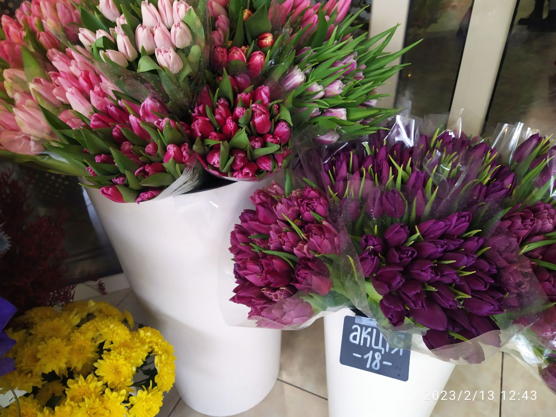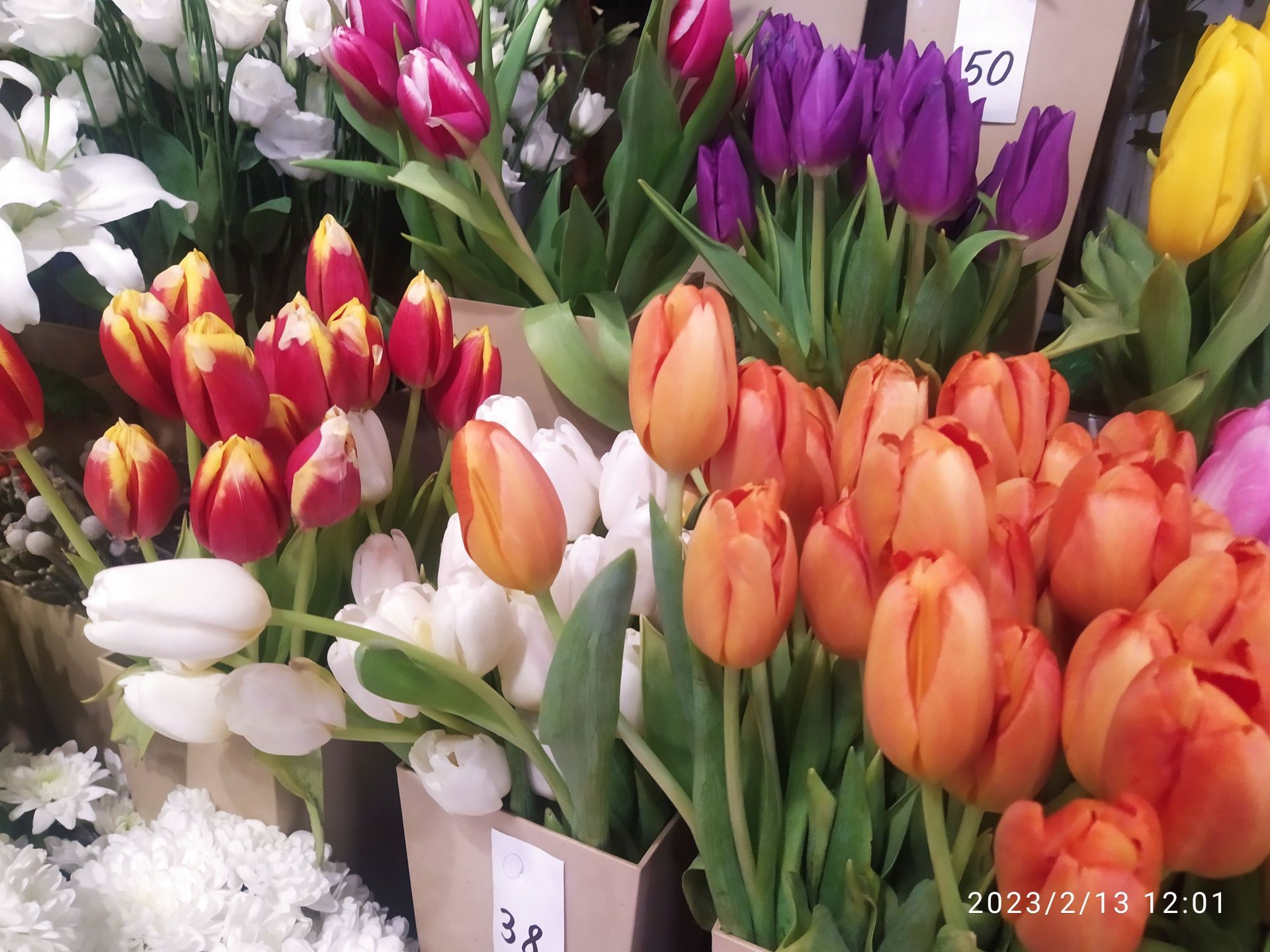 Флористи розповідають, що найчастіше зараз купують троянди та тюльпани, хоча зі списку не варто виключати півонії, ранункулюс. А от маргаритки важко зустріти в переліку, хіба що в композиції з іншими квітами. Вартість троянд різна. Приблизно 60—100 гривень. А от ціна тюльпанів — 30—40 гривень.
