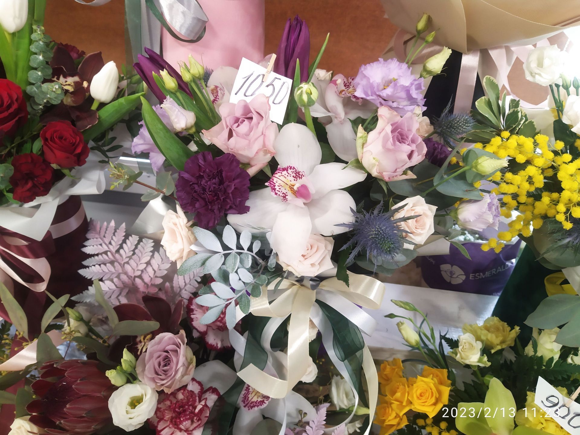Самі ж композиції флористи формують на споживача різної категорії. Від 200 приблизно гривень і більше. Можуть бути замовлення і на суму декілька тисяч гривень. Середня ж вартість букета у крамницях цього року — 600—800 гривень.