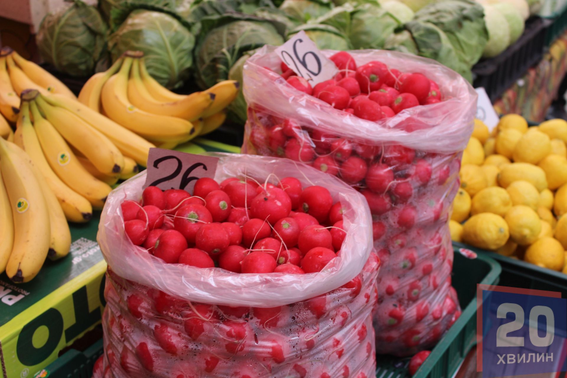 На ринках і супермаркетах вже з’явились овочі. Продавці на овочевому ринку кажуть, що тернополяни вже почали масово їх купувати. Популярністю користуються помідори, огірки та редиска. Журналістка “20 хвилин” купила два види редиски, вартістю 28 гривень за кілограм, і два види огірків, 38 гривень за кілограм.