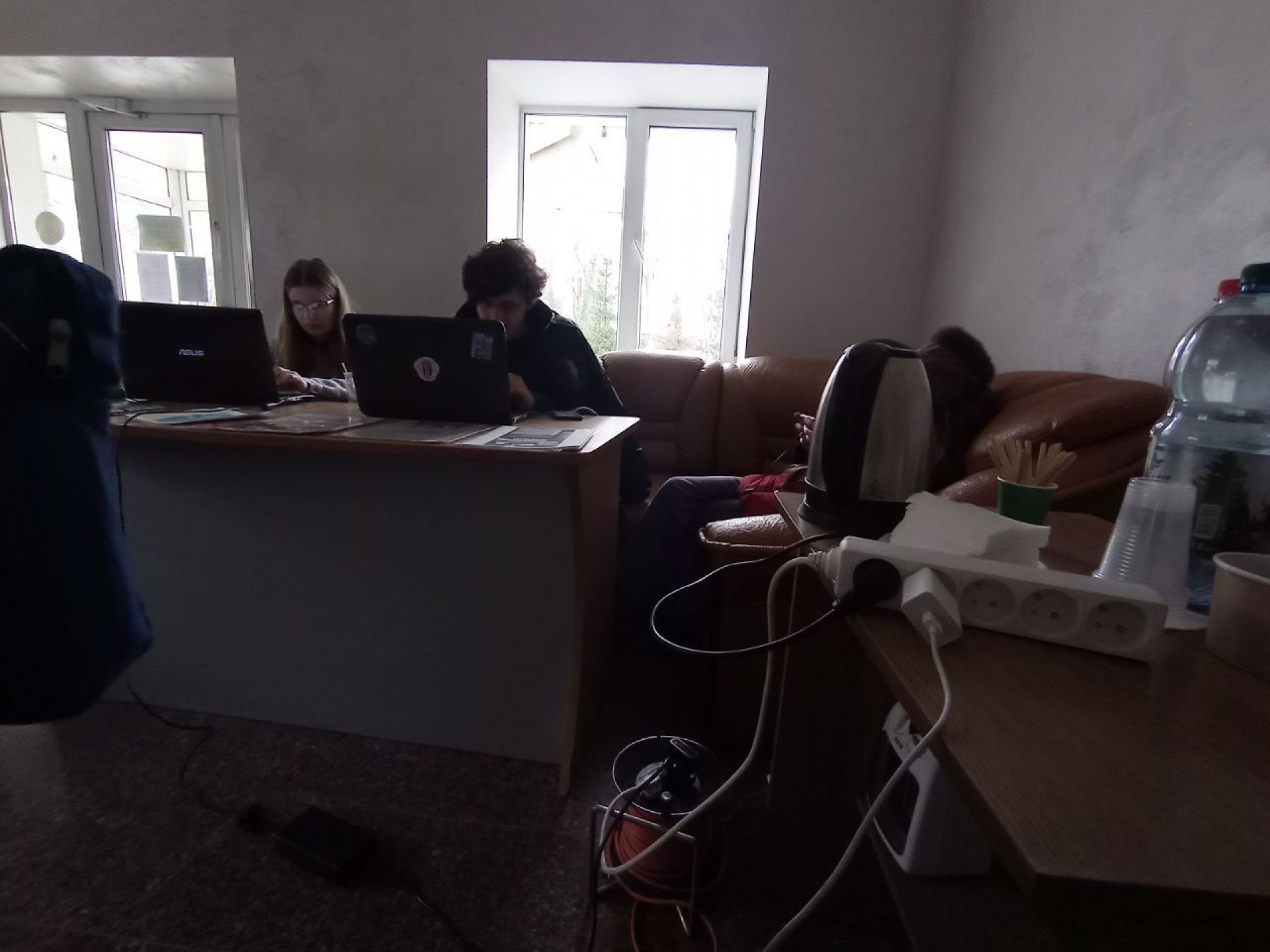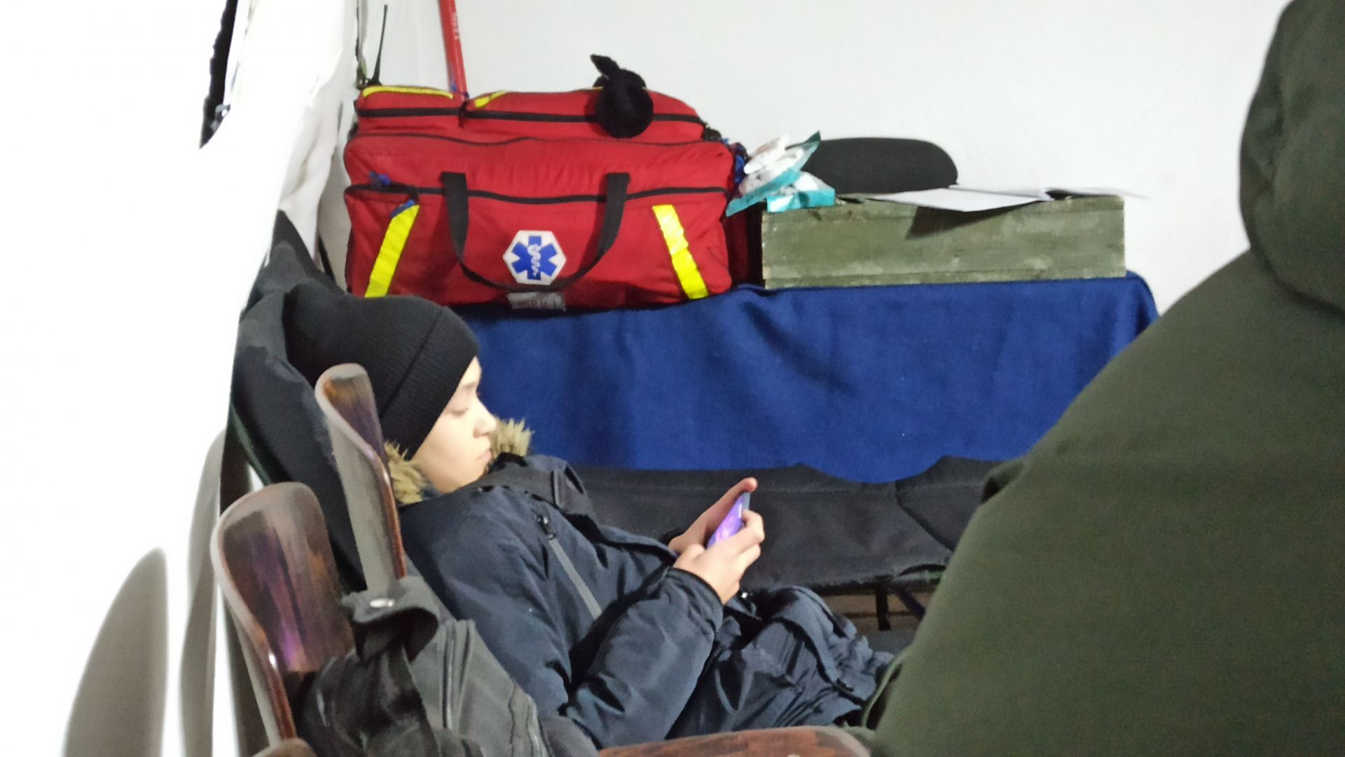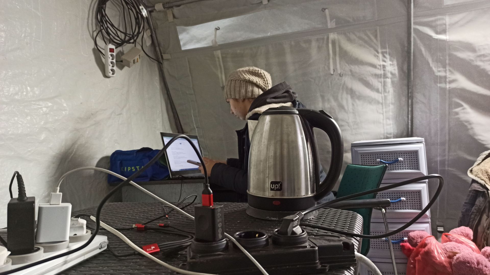 Мобільний інтернет також повільний, імовірно, через те, що багато мешканців району, які були без світла, одночасно ним користувались. Всередині є буржуйка, але там прохолодно і відчувається запах диму, тож ми сиділи у верхньому одязі, як і інші містяни, які прийшли зарядити смартфони. Тут облаштували дитячий куточок, де можна малювати і гратися. Кілька дітей бавились в мобільні ігри. Вони відпочивали на лежаках. Їх тут два.