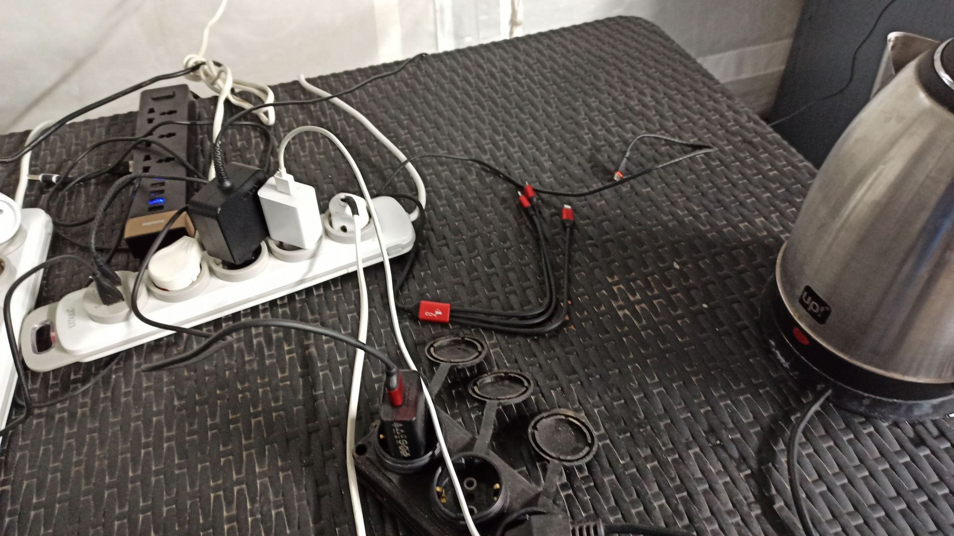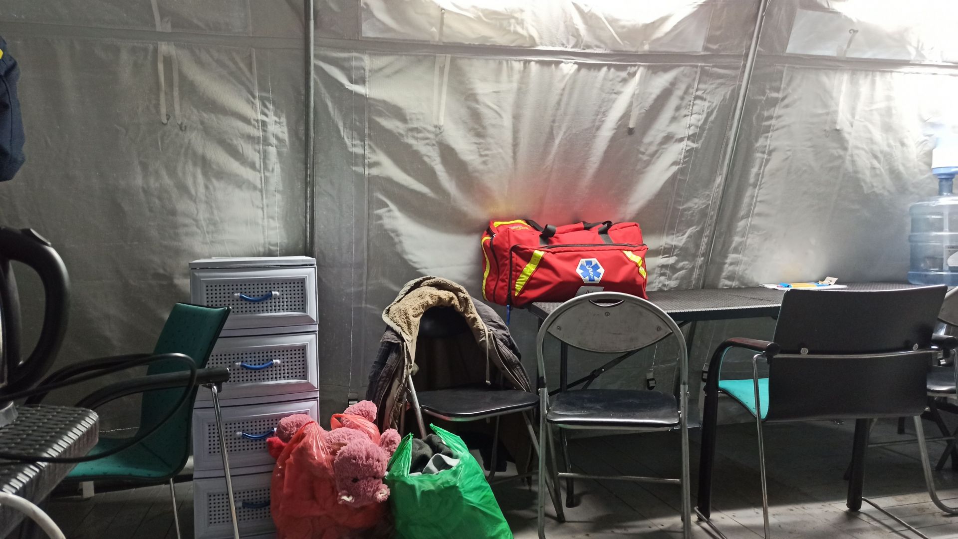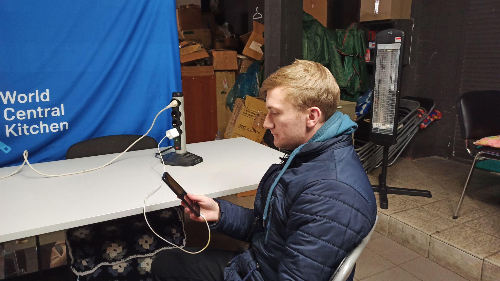 Мобільний інтернет також повільний, імовірно, через те, що багато мешканців району, які були без світла, одночасно ним користувались. Всередині є буржуйка, але там прохолодно і відчувається запах диму, тож ми сиділи у верхньому одязі, як і інші містяни, які прийшли зарядити смартфони. Тут облаштували дитячий куточок, де можна малювати і гратися. Кілька дітей бавились в мобільні ігри. Вони відпочивали на лежаках. Їх тут два.