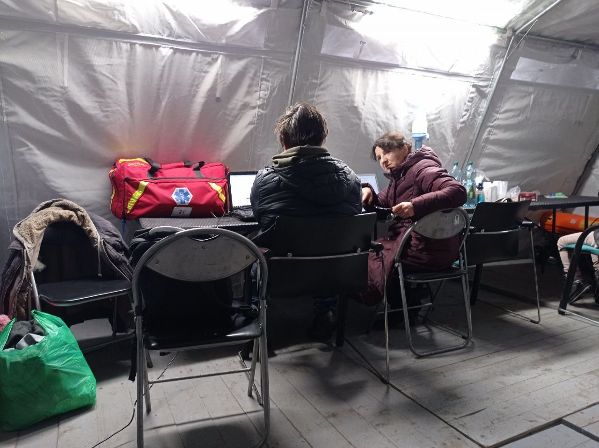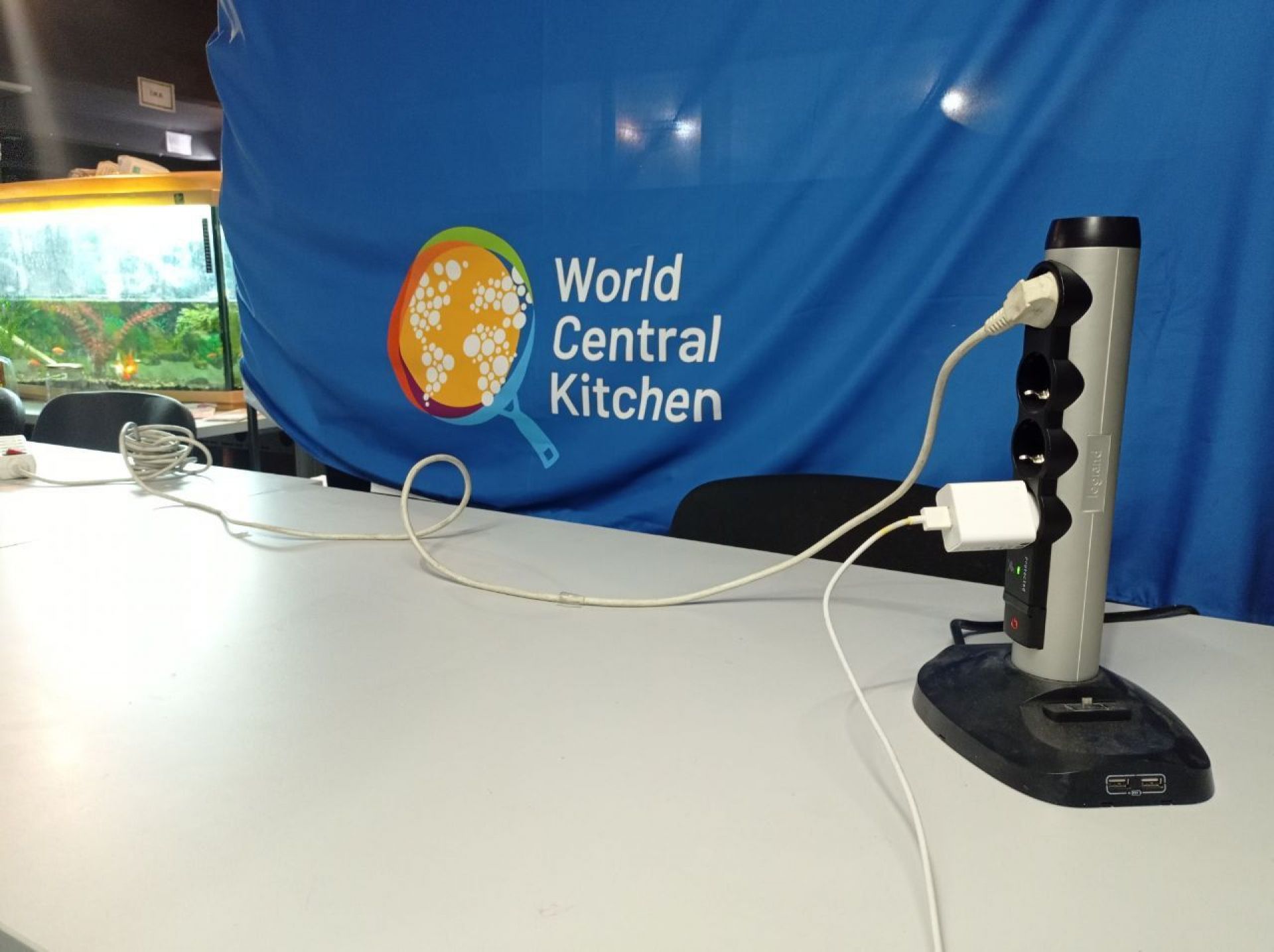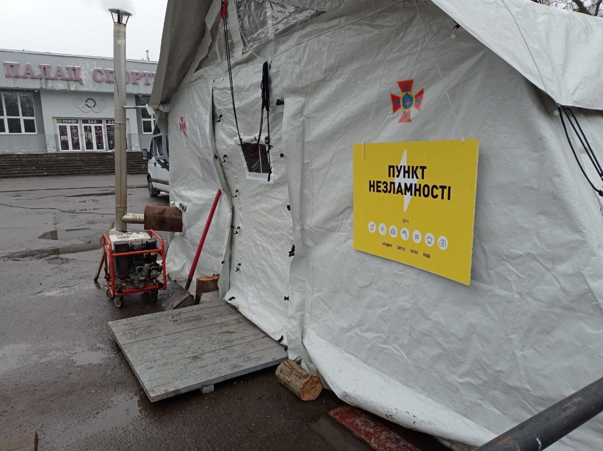 Всередині комфортно, достатньо розеток, щоб підзарядити техніку, є освітлення, окремий стіл з кількома чайниками та печивом. Як ми помітили, це найновіший намет серед тих, які встановили у місті. Він надувний. Але відчутно запах гуми, хоча до нього швидко звикаєш і не звертаєш уваги. Також працював термінал «Старлінк». Щоправда, через велику кількість користувачів інтернет був повільний. Тому значно комфортніше користуватись власним мобільним. У пункті чергували кілька рятувальників, допомагали людям. Пропонували чай та каву, радили, як підключитися до інтернету. Тут досить тихо, тому можна спокійно попрацювати або просто займатися власними справами, підзарядити техніку і відпочити.