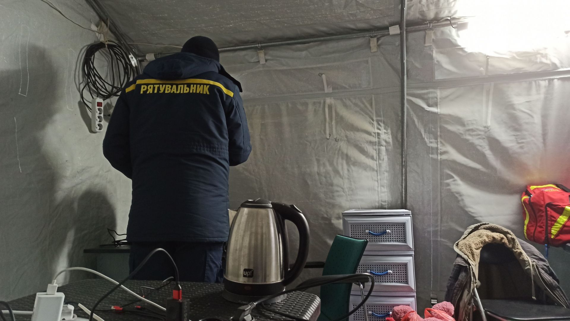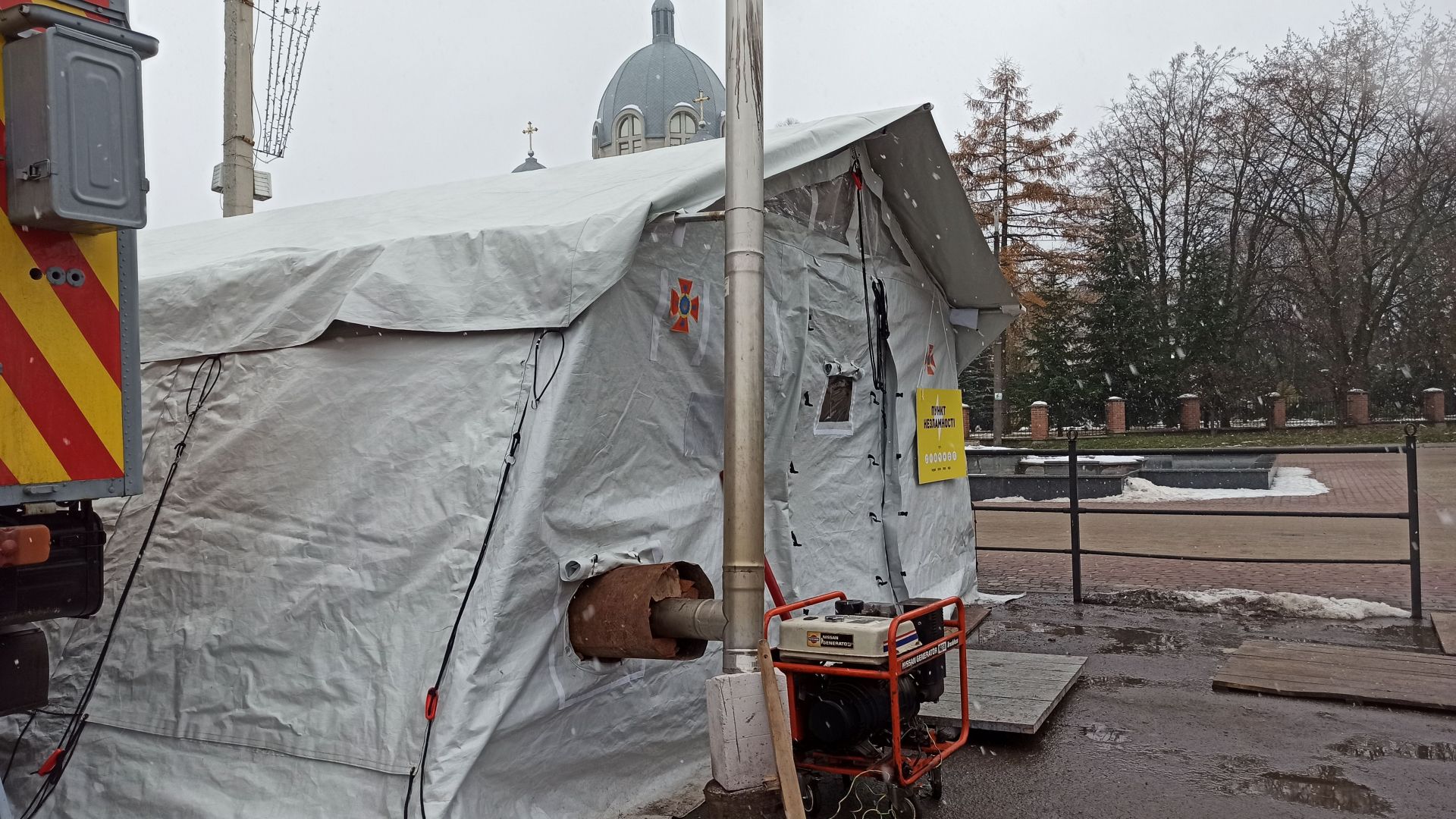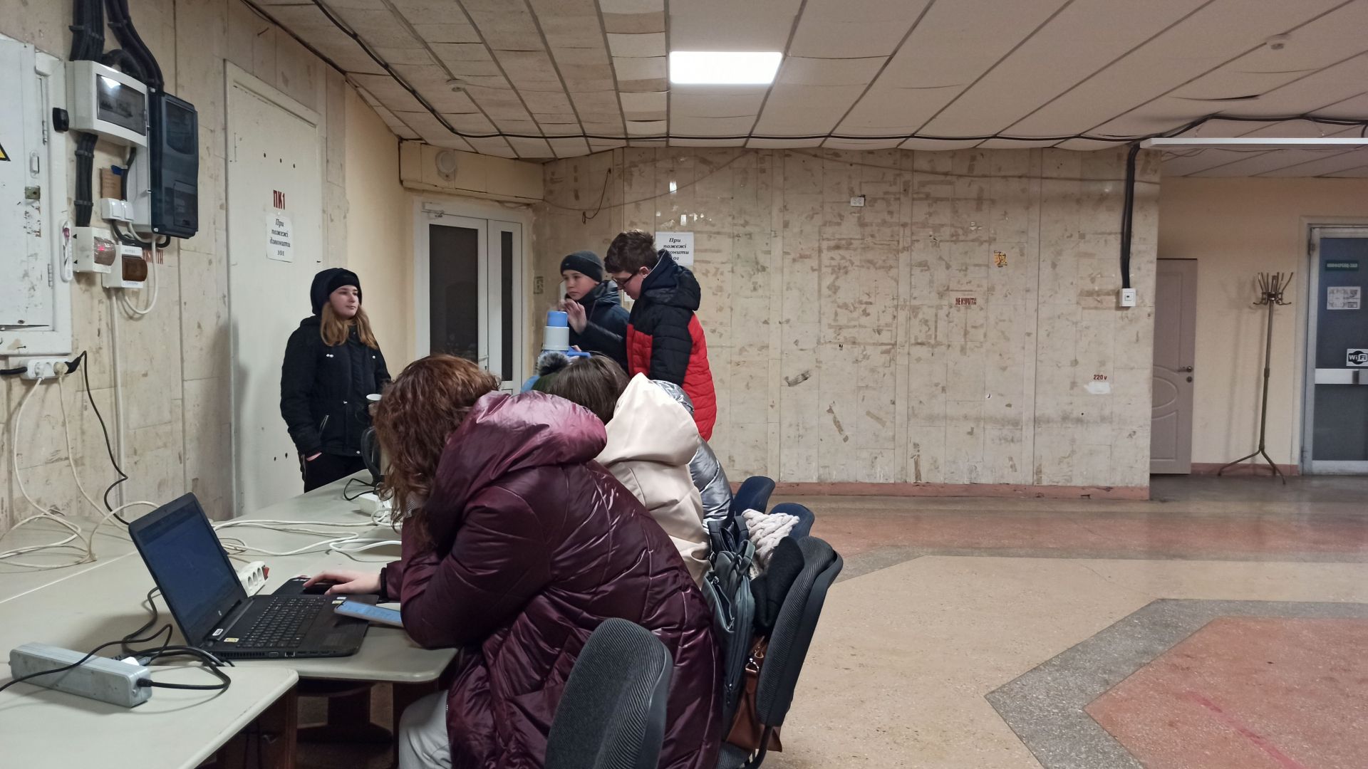 Під час нашого візиту у прилеглих будинках вимкнули електроенергію. Рятувальники запустили генератор, тож всередині пункту обігріву було світло та можливість підключити техніку на зарядку. Також можна зробити чай. А от стабільного вайфаю, на жаль, не було. Хоча у міській раді повідомляли, що цей пункт має мати інтернет – рятувальники розповіли, що наразі мережі немає.