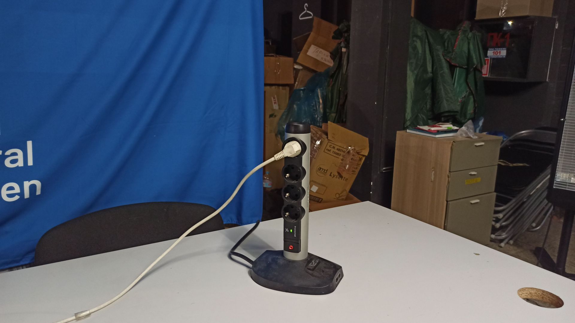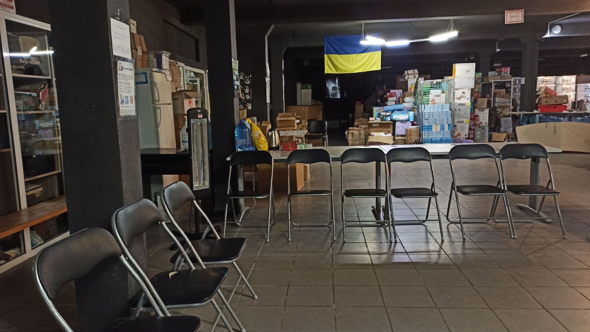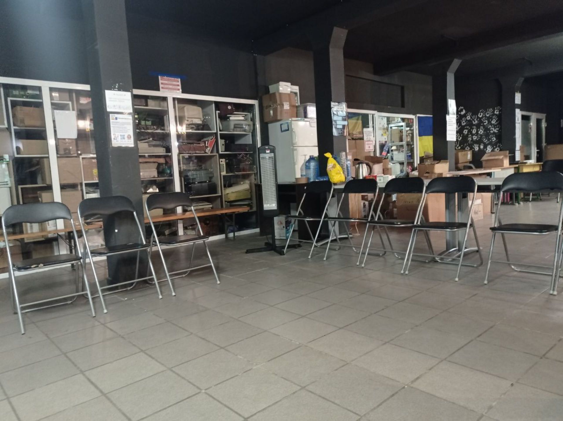 Цей пункт незламності є стаціонарним та розташований за адресою: Площа Героїв Євромайдану, 4. На сайті Тернопільської міської ради вказали, що він цілодобовий. Всередині напівсутінки, досить темно. Більше десятка стільців та столи поставили майже в центрі приміщення. У пункті можна підзарядити смартфон чи іншу техніку, адже є два подовжувачі. Наш журналіст самотужки це перевірив і спробував під’єднати зарядку до розетки. Все працює.