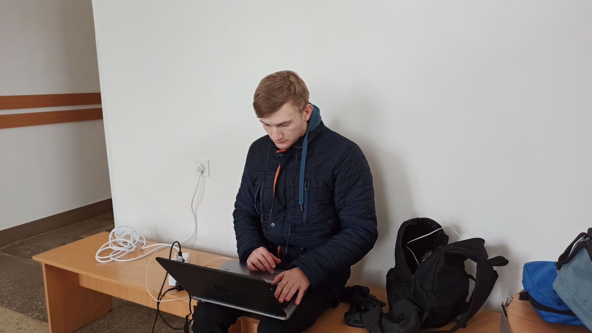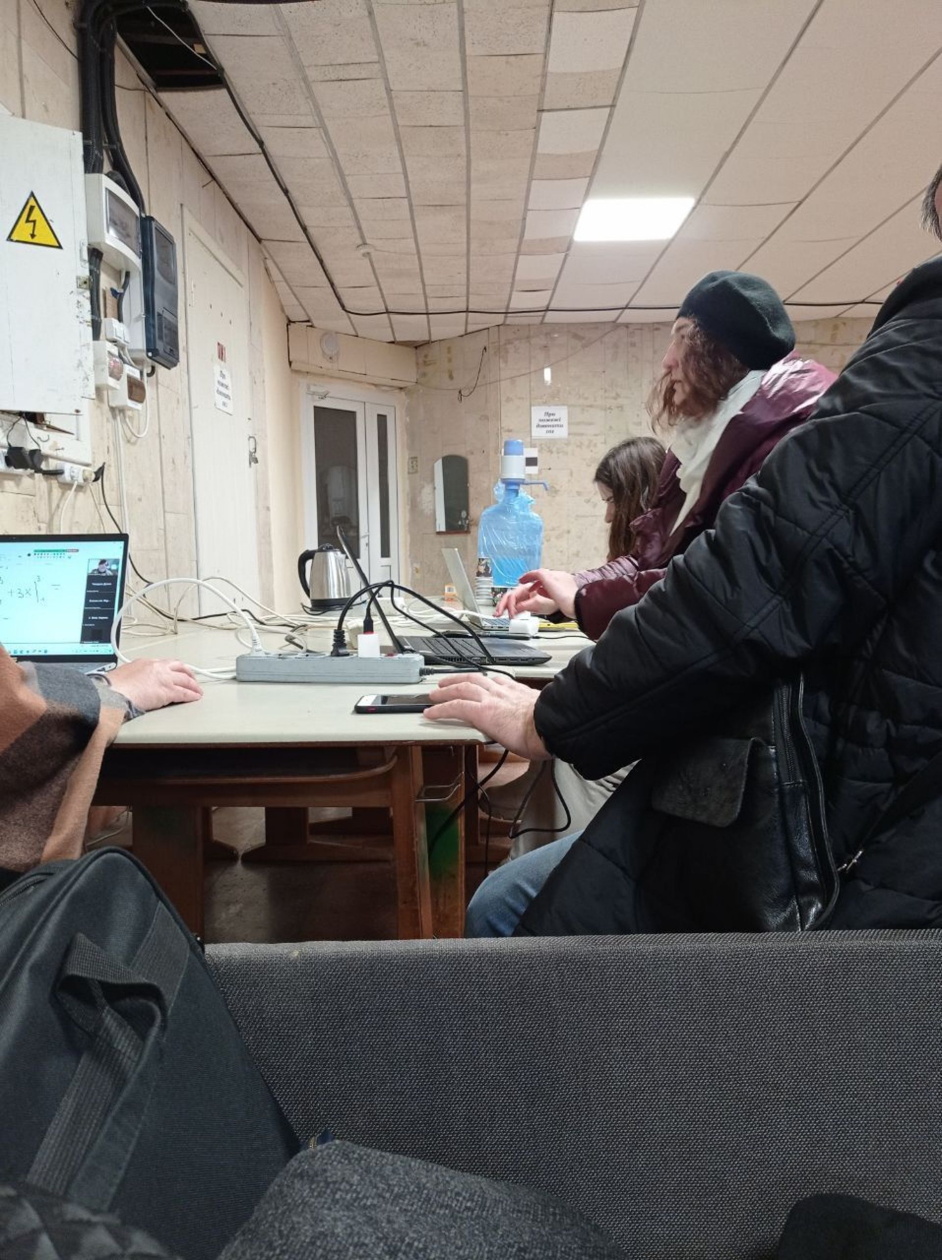 Хоч тернополян у пункті велика кількість, але комфортне місце для себе нам знайти вдалось. Люди працюють за ноутбуками, дехто заряджає смартфон. За столом вчителька однієї зі шкіл проводила урок з математики. Погрітися сюди прибігали школярі. В пункті є подовжувачі, й відповідно чимало розеток, тому можна підзарядити техніку. Ми спробували під’єднатись до Wi-Fi, пароль від якого написаний на аркуші, що висить на стіні. Це вдалось не з першого разу. Коли з’єднання врешті з’явилось, інтернет вантажив з перебоями. Приміром, до конференції у Zoom тут не під’єднаєшся, не завантажує і мультимедійний контент – фото й відео. Інші містяни теж скаржились, що швидкість інтернету повільна. «Старлінка» немає. Деякі відвідувачі пункту роздали мобільний інтернет і підключились до нього з ноутбука. За безпекою й порядком слідкував поліцейський. На столі поставили чайник, балон з питною водою, одноразові стаканчики та чай в пакетиках. Ми заварили собі гарячий напій. Під час наших відвідин у мікрорайоні «Сонячний» вимкнули світло. Зникло воно й у Центрі дозвілля і молодіжних ініціатив. Працівник центру пішов підключати генератор. Живлення з’явилось за лічені хвилини. Також до генератора під’єднали альтернативне опалення й роутер.