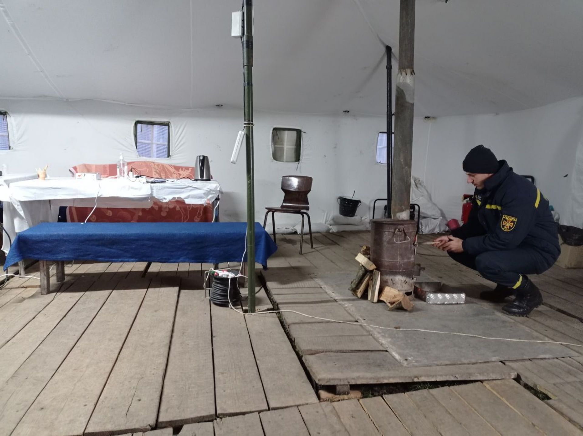 Ми стали свідками ситуації, як в таких умовах репетиторка (чи то вчителька) проводила заняття для учня. Людей всередину намету впускає черговий рятувальник, допомагає їм знайти собі зручне місце. Коли тернополяни залишають пункт обігріву, чоловік прибирає після них, викидає сміття. Також періодично підкидає дрова в буржуйку. Щодо побутових речей, у наметі є два лежаки, на яких можна відпочити, вогнегасник, інфрачервоний обігрівач, який був вимкнений на той час. Тут поставили мікрохвильовку, тому можна розігріти поїсти. На столі навпроти розміщена аптечка з медикаментами й іншими засобами для надання оперативної медичної допомоги. Є балон з питною водою, чай, кава, сухе печиво. У кутку наші журналісти побачили Starlink для підключення до супутникового інтернету. На листочку, який біля мікрохвильової печі, вказаний пароль до вай-фаю. Швидкість з’єднання, як ми перевірили, хороша. У пункті тернополяни мають змогу підзарядити свої пристрої. На столі навіть поклали кілька зарядок, якщо ви раптом забули її вдома. До намету зайшла жінка і запитала, чи дійсно пункт обігріву приймає людей цілодобово. Рятувальник відповів, що пункт має працювати цілодобово, але діє комендантська година. До намету зайшли кілька школярів. Їм було цікаво, що всередині. Побувши там кілька хвилин – вони пішли. Ніхто не сварив дітей, що вони прийшли сюди з цікавості.
