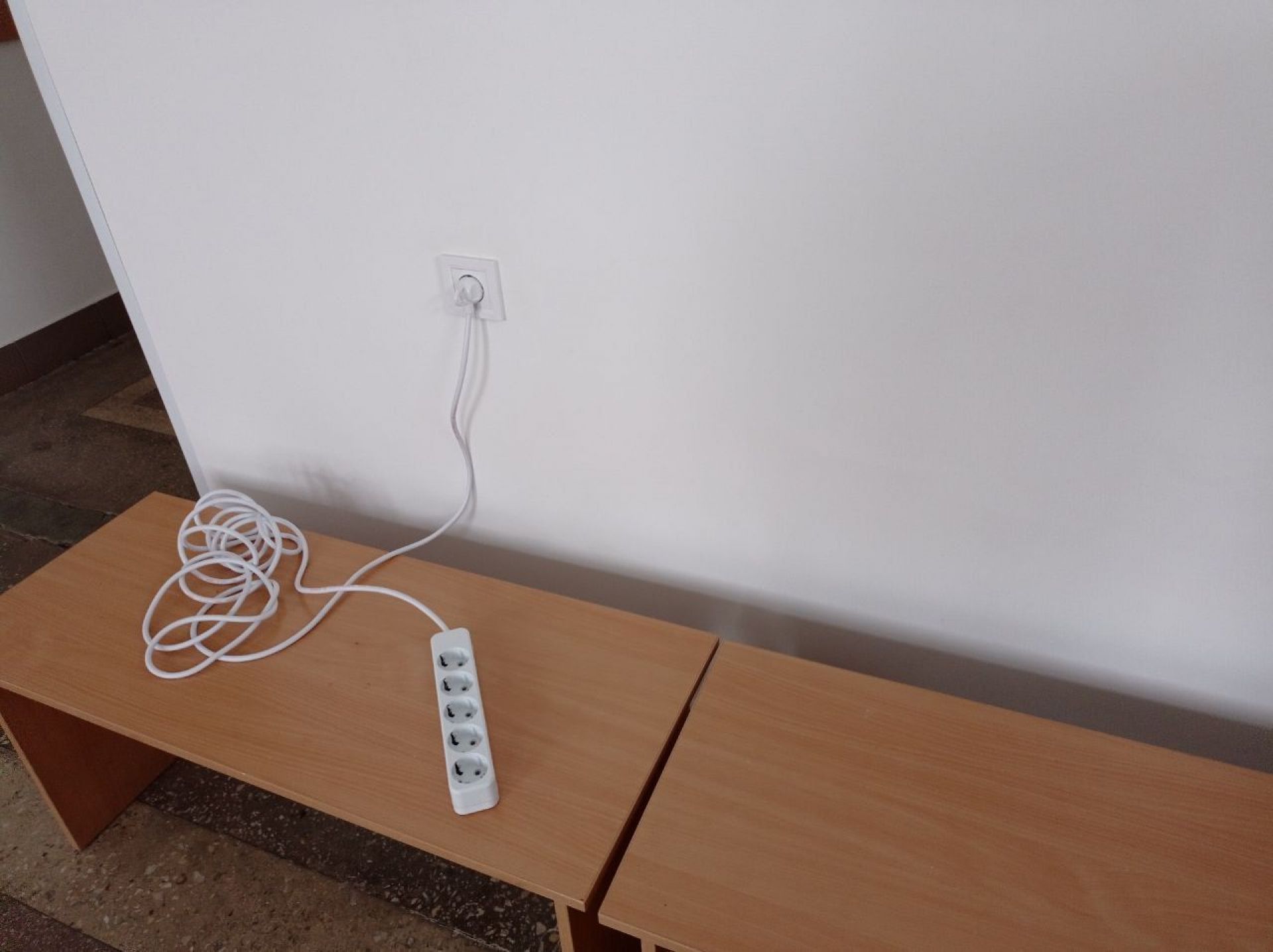 На випадок вимкнення світла Центр науки забезпечений генератором. Але на час наших відвідин пункту незламності електропостачання було, тому резервне не вмикали. На столі – чайник, запас питної води, кілька упаковок чаю, кава, одноразові стаканчики й печиво. Охочі мають змогу випити тут гарячий напій, зігрітись й злегка перекусити. У кутку стояли два обігрівачі, але вони не працювали. Вочевидь через те, що людей тут взагалі не було. Принаймні, допоки ми не залишили цю локацію. У приміщенні було холодно, верхній одяг ліпше не знімати. Інтернет, як розповів нам чоловік, якого ми зустріли в Центрі Науки, мають, але він дуже поганий, майже «не ловить». Тому сенсу підключатись до нього немає. Аби згаяти час без соцмереж, можете подивитись на рибок – тут стоїть акваріум.