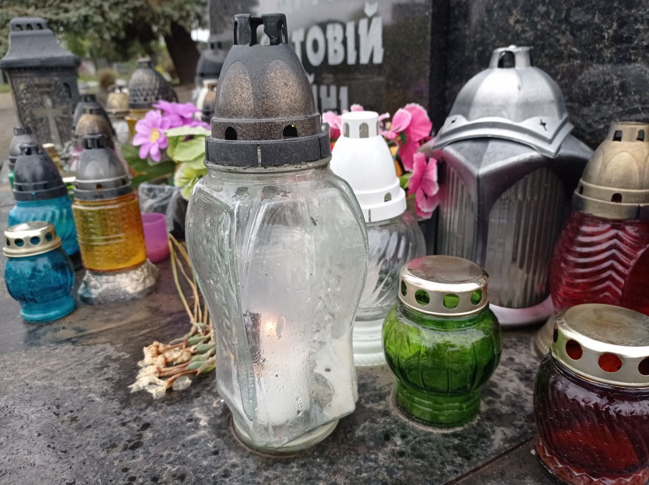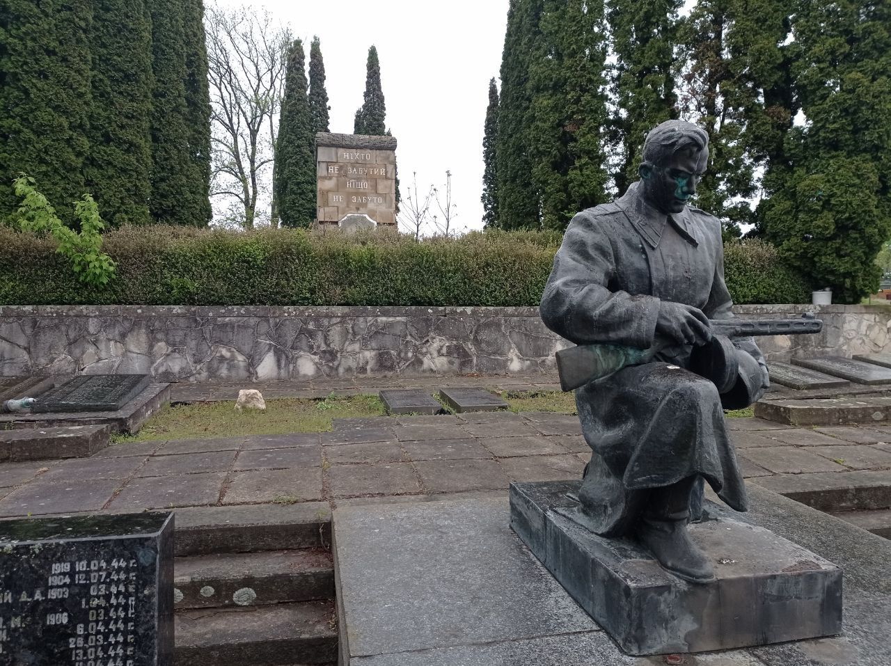 Біля військового кладовища радянських солдат та меморіалу ми не побачили свіжих квітів. Там стояли старі лампадки. Хтось запалив дві свічки.