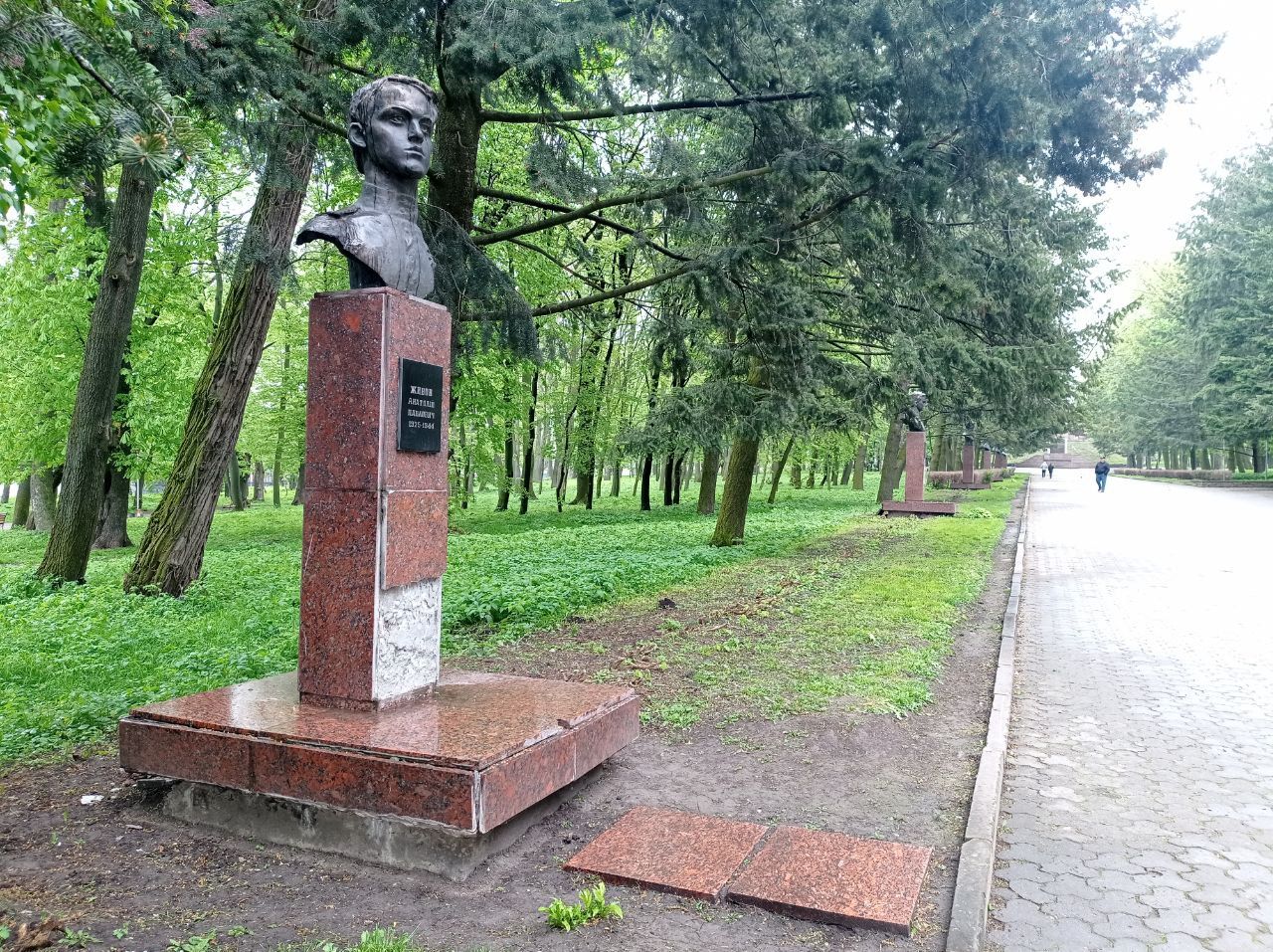Тут ми також не побачили ані квітів, ані лампадок. Погруддя військових не в найкращому стані. Постаменти розвалюються, не вистачає частини плит оздоблення. На пагорбі, де був вічний вогонь, тепер смітник. Комплекс розмальований графіті.