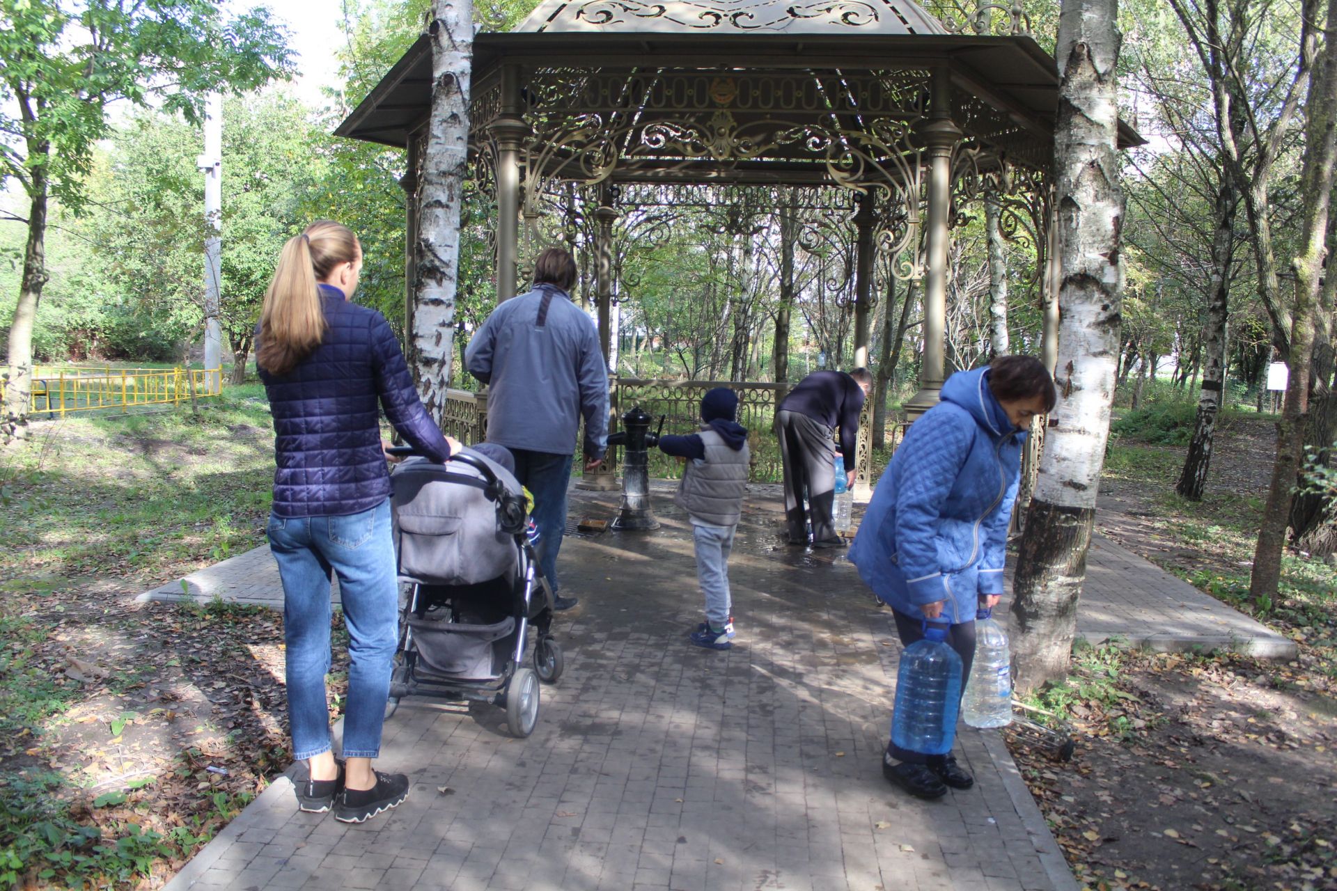 Біля бювету часто збираються черги з людей. Переважно це - мешканці будинків поруч. Дві колонки працюють, однак люди користуються лише однією, навіть якщо збирається черга. Як пояснив тернополянин пан Василь – так буде швидше набирати воду.