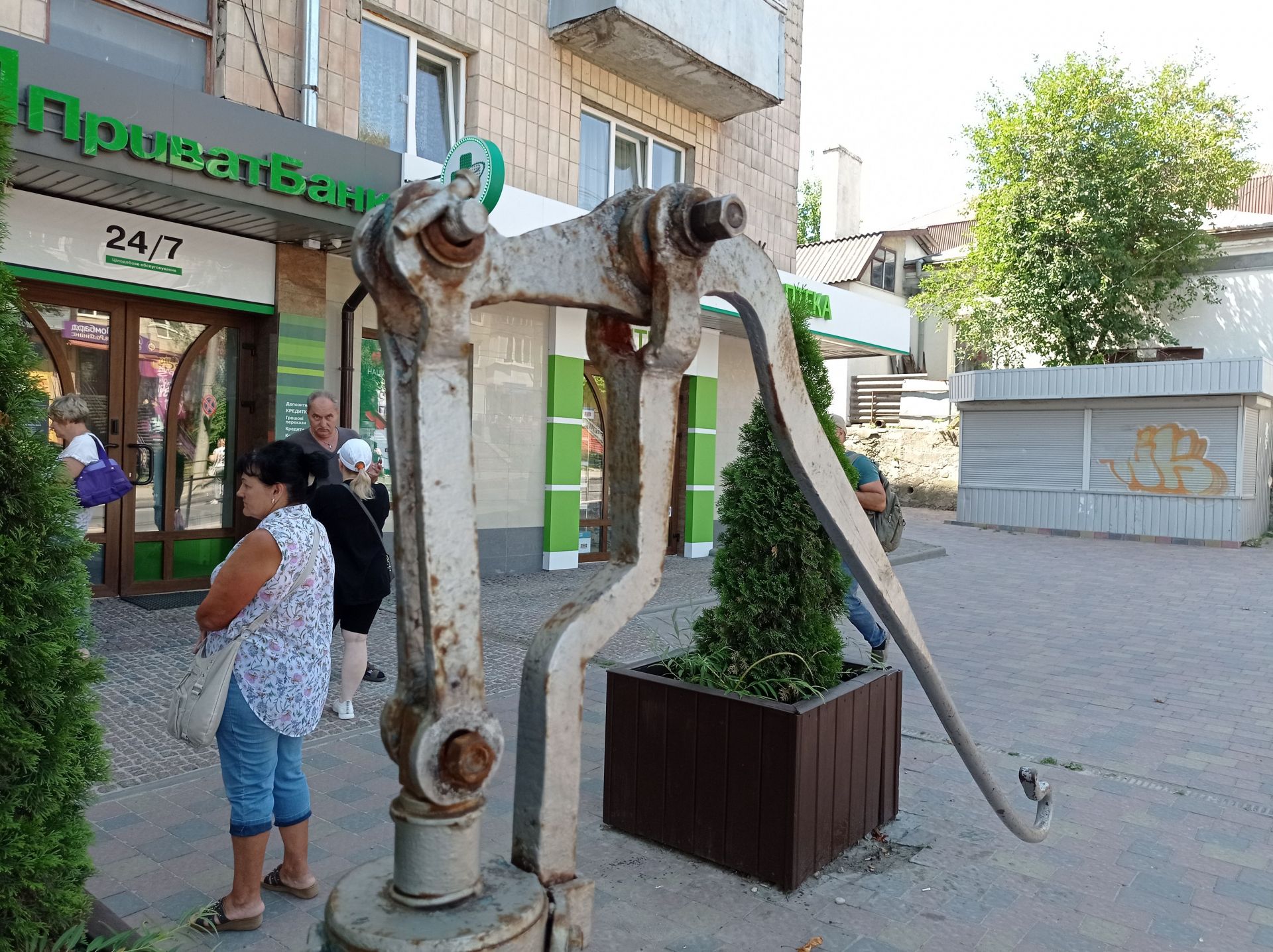 На вулиці Гетьмана Мазепи є стара колонка–качалка. На перший погляд може здатися, що нею ніхто не користується, або вона взагалі не працює. Навколо колонки було сухо. Механізм «йде» важко, однак щойно ми почали прокачувати – з крану одразу полилась вода. Спершу вода мала ледь помітний жовтуватий відтінок, однак вже за кілька прокачок вона була прозора.