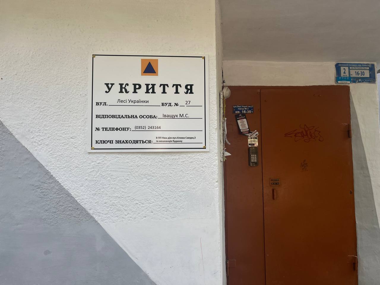 В укриття у будинку №27 можуть одночасно поміститися 65 людей, а ось №29 – 218. Про це йдеться на мапі в додатку «еТернопіль». За даними вказаними на дошках відомо, що укриттями опікується приватне підприємство «Наш дім». Ми неодноразово телефонували за вказаним номером, але слухавку ніхто так і не підняв.
