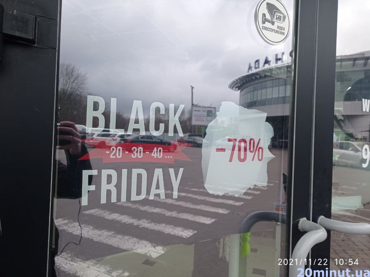 У різних невеликих магазинах в місті теж вивіски про знижки до «чорної п'ятниці». До 70% на товари в магазинах з приладдями для салонів краси, що біля ТЦ «Орнава».