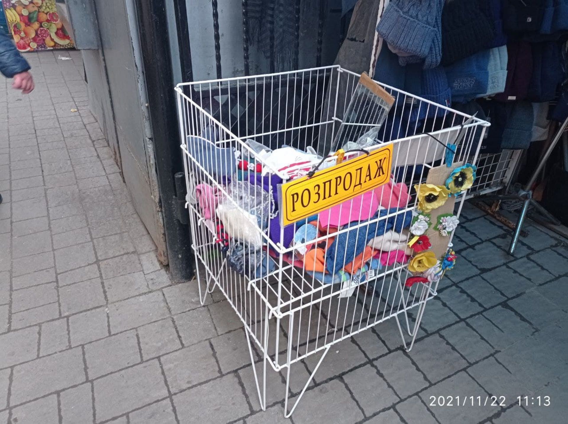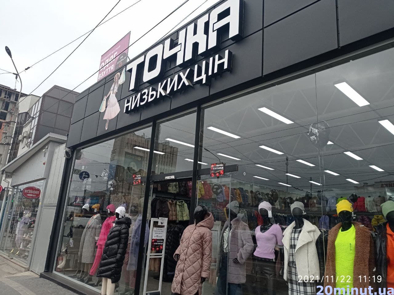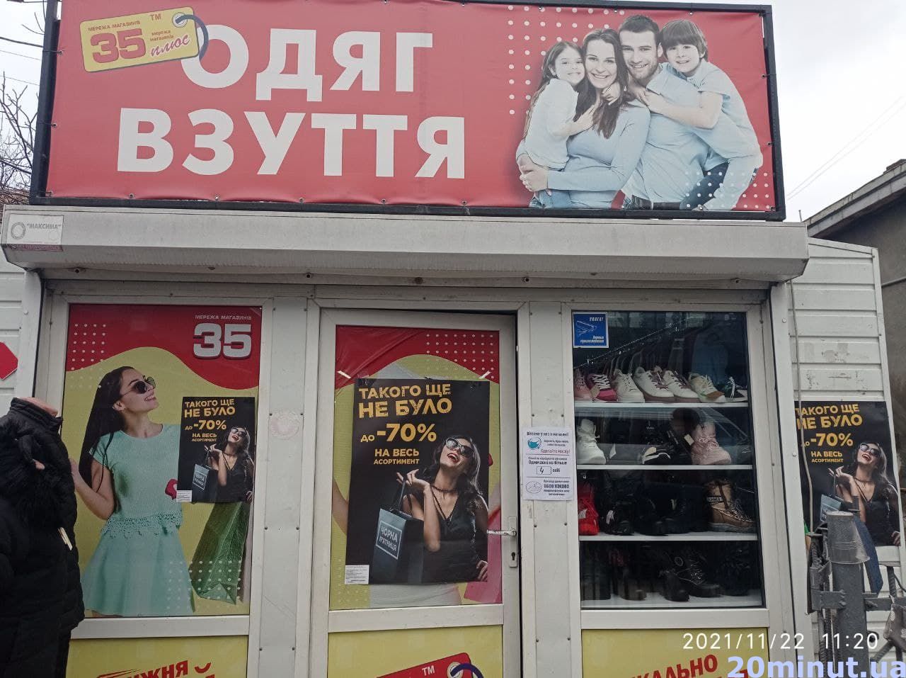 У деяких магазинах на вулиці Живова теж розпродажі. У кіоску одягу та взуття знижки до 70% на увесь асортимент.