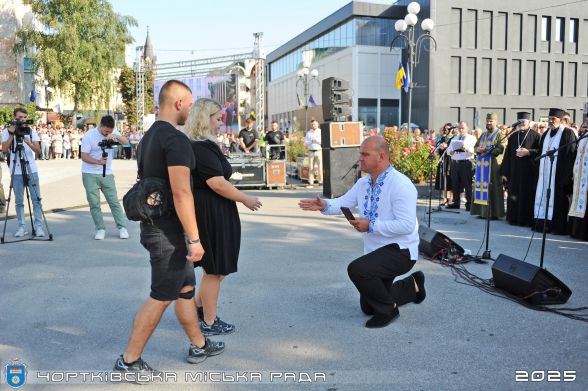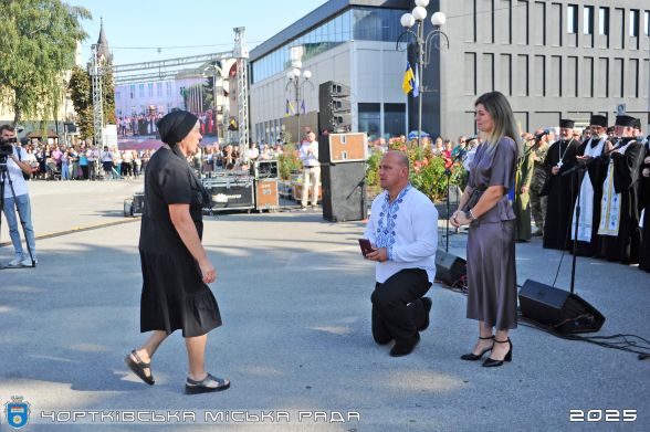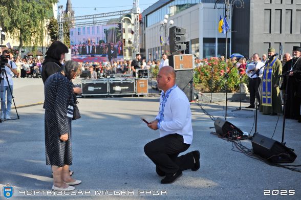 Міський голова Володимир Шматько вручив нагрудні знаки «Почесний громадянин міста Чорткова» (посмертно) родичам загиблих на російсько-українській війні Героїв Чортківської громади.
