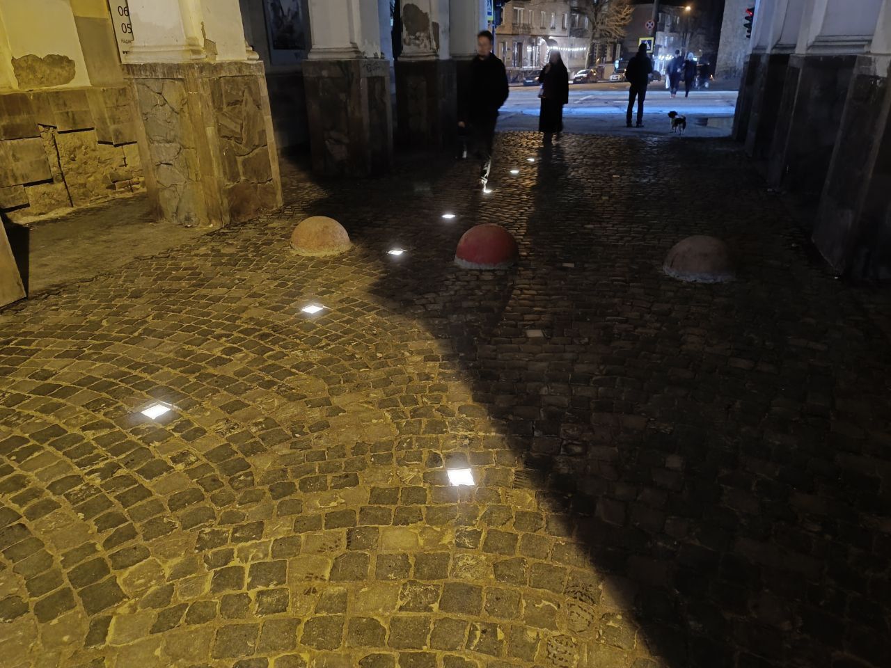 - Нову світлову бруківку на Валовій встановили у червні минулого року. Однак частина ліхтариків не працює.