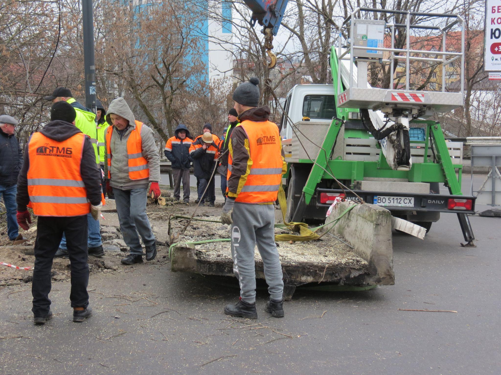 Наразі біля заїздів на міст встановоли обмежувачі руху та відповідні дорожні знаки. Робітники демонтували плиту, яка просіла в результаті ДТП з вантажівкою.