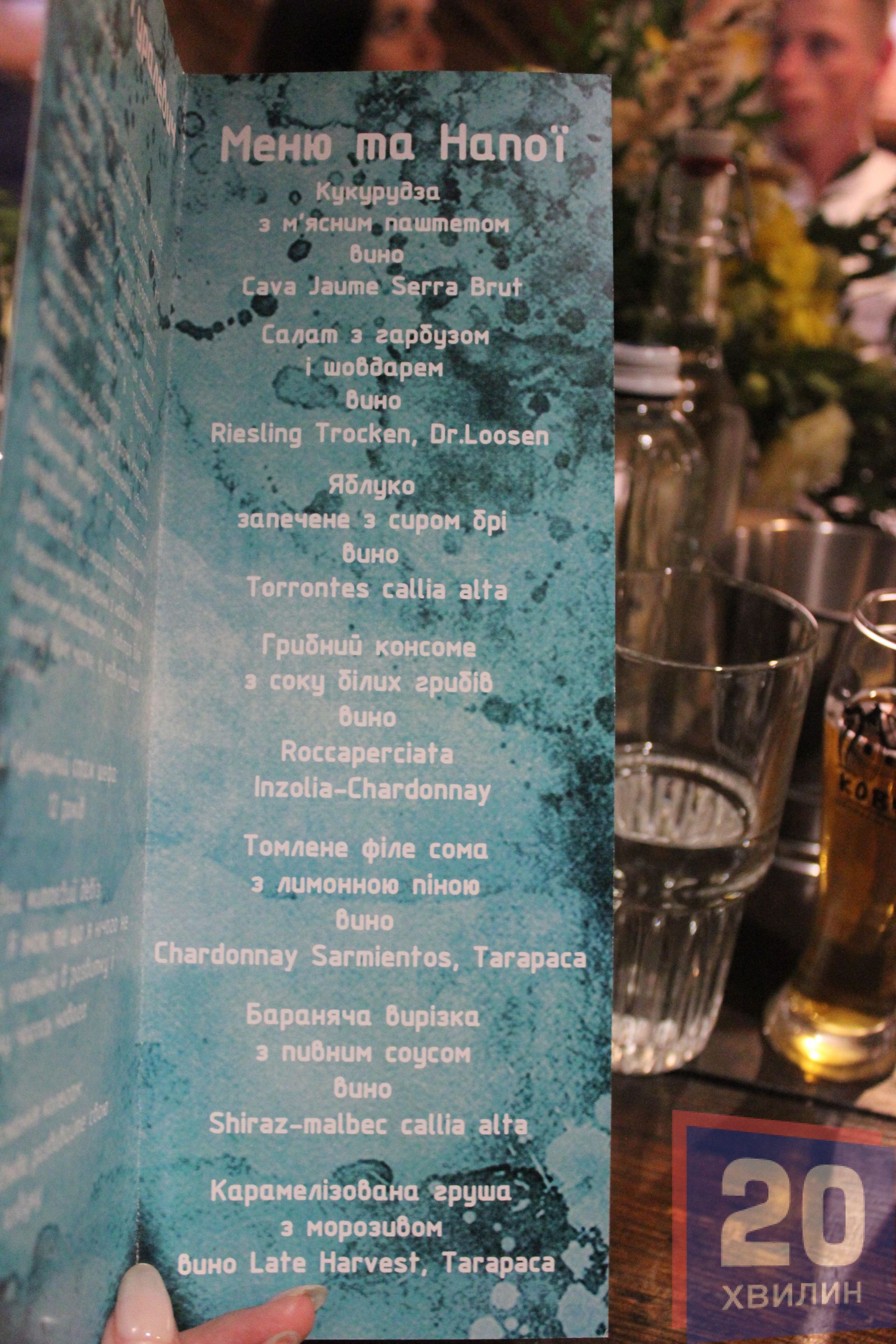 - Я кажу, що я нічого не знаю, бо немає меж досконалості, - каже Віталій. - Щодо меню, то я придумав його за день. Сидів у вівторок 18 вересня, в “Ковчезі” на ”літніку” і склав меню. В середу закупив продукти, зробив проробки. Потім дав власникам закладу на затвердження і відразу покликали сомельє, щоб підібрати напої. В суботу закупили продукти на цю вечерю, в неділю зробили проробки і все.