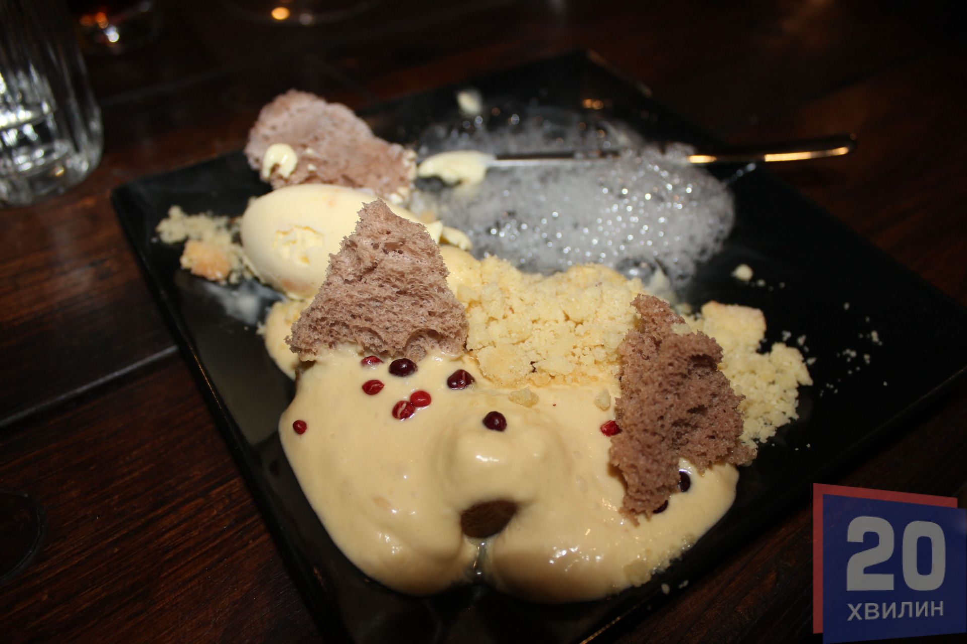 - Спершу, коли я побачила в меню карамелізовану грушу, то подумала, що це буде стандартний десерт, - каже фудблогер Наталі Литвин. - Але, коли Віталій почав розказувати, що це різні частинки бісквіту. Одна з яких в рідкому азоті, який потрібно акуратно їсти. Така подача дуже налаштовує на гарні емоції та класний настрій. І дуже сподобалось поєднання в десерті: шматочки груші під соусом, бісквіти, морозиво. І цей десерт, мабуть, один з найсмачніших, які я куштувала. Дуже б хотілось, щоб подібний десерт був у меню.