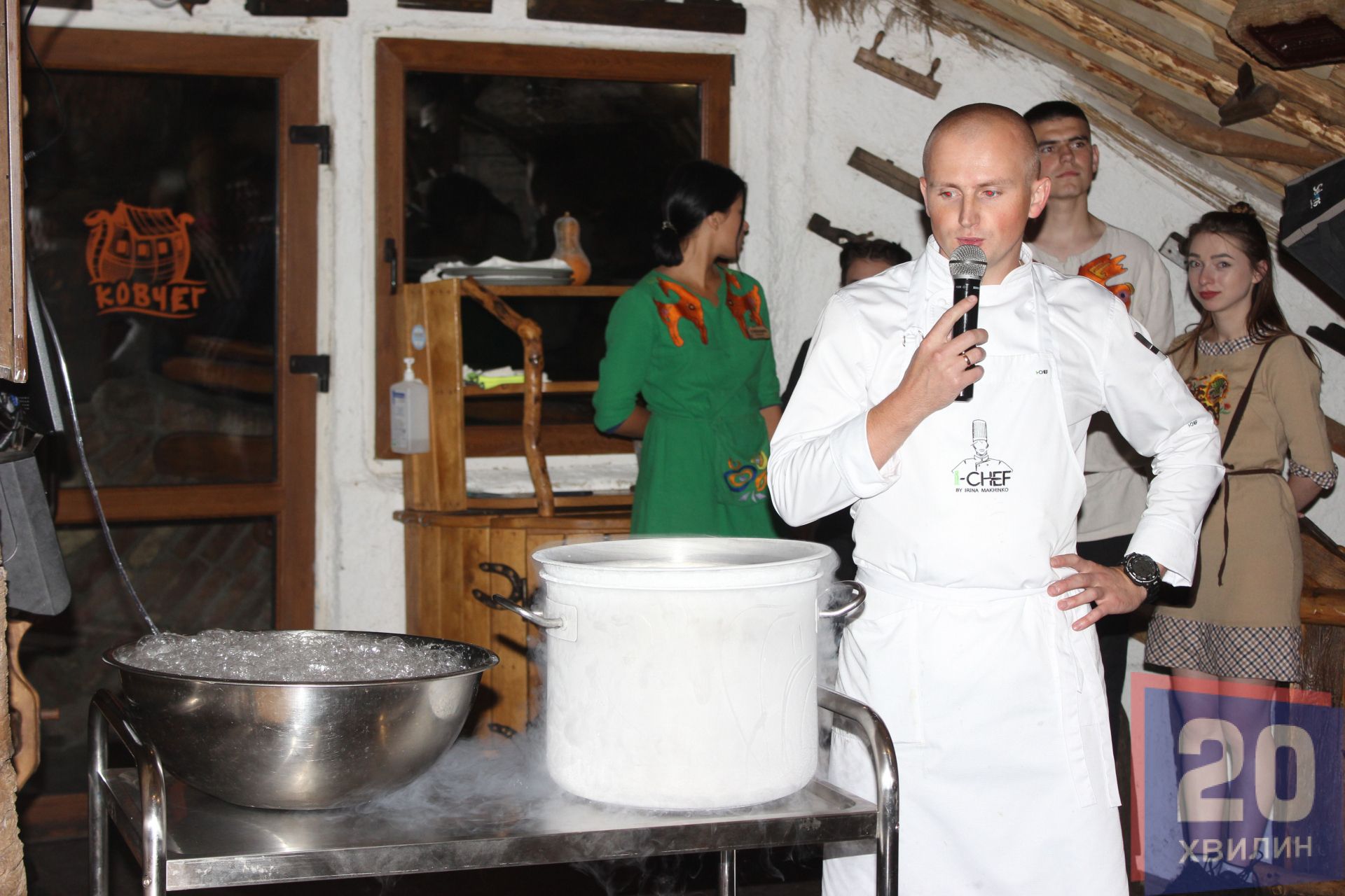 - Бренд-шеф мережі “Самогонна ресторація” Віталій Гуралевич вражав техніками приготування та кількістю страв.
