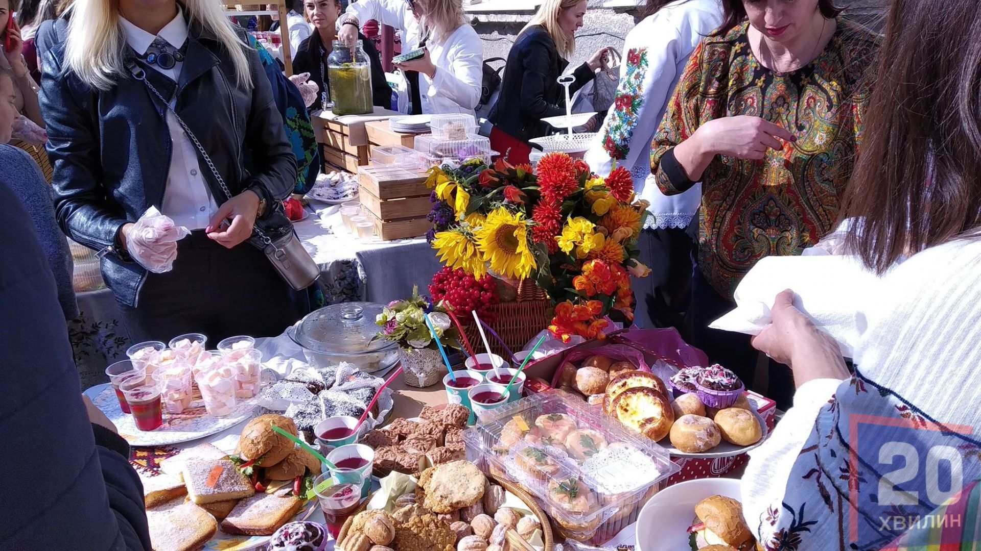 - На шкільному майданчику кожен клас представляв свої страви, які приготували на продаж.