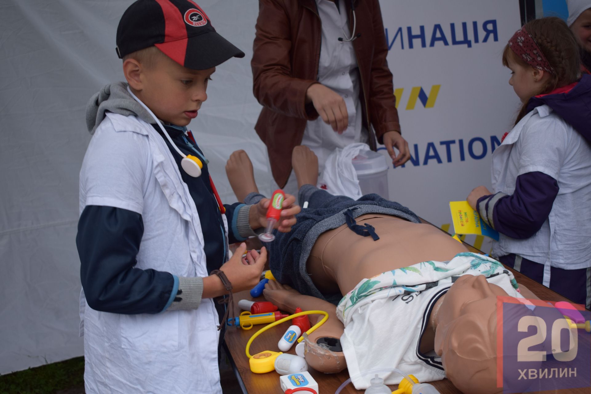Близько 50 професій представили сьогодні для дітей організатори. Серед найцікавіших – це рятувальник, поліцейський, військовий, журналіст і лікар. Звідусіль лунали сирени, дітлахи передавали інформацію по раціях, гасили пожежу, знімали відео, рятували людей, стріляли, продавали ліки, шукали метал і виконували ще безліч різних завдань.