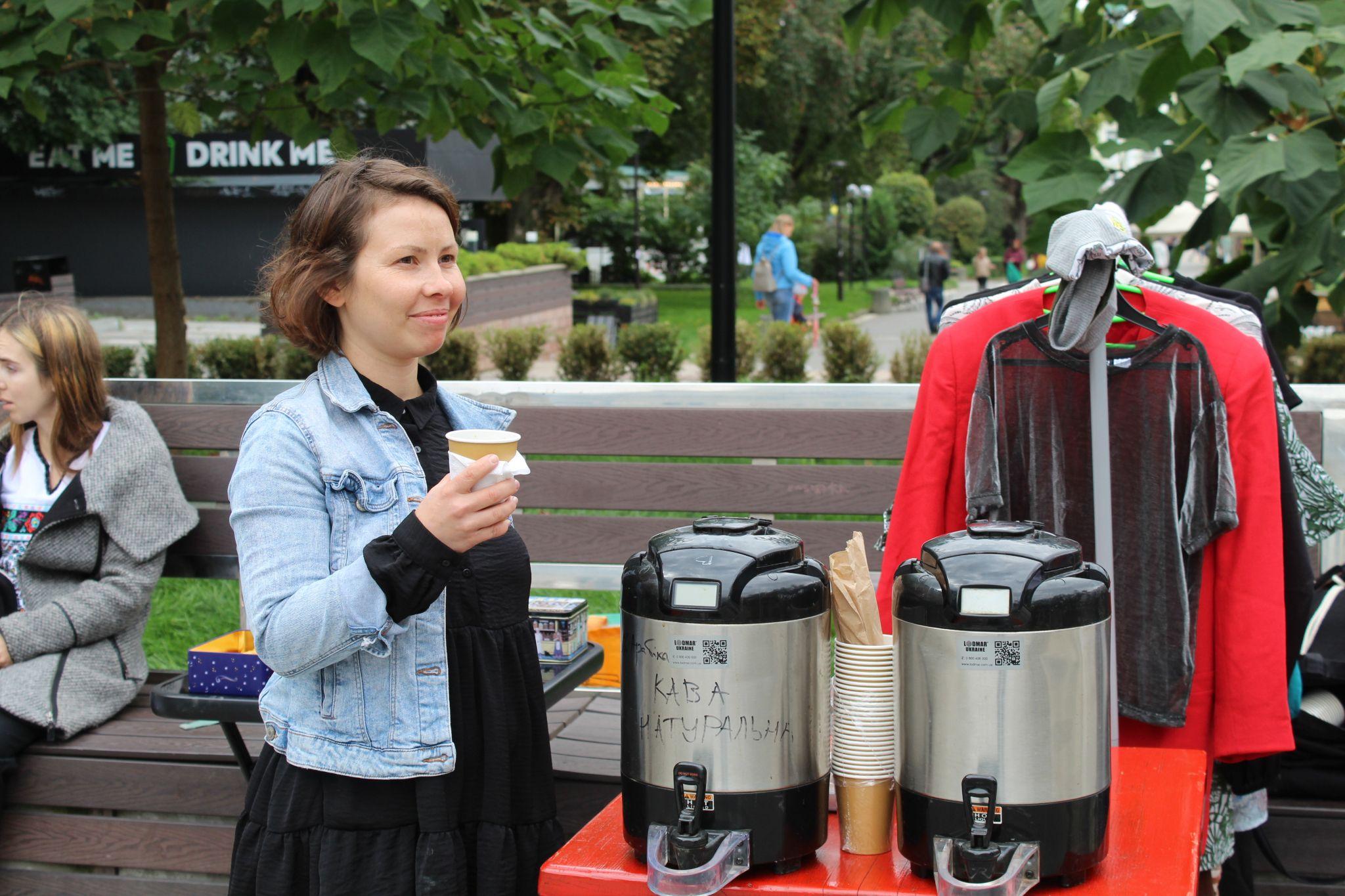 Всіх пригощали ароматною гарячою кавою всього за 10 гривень. Пропонували також незвичайну лотерейку у підтримку Збройних Сил України, аквагрим для дітей і навіть тату хною.