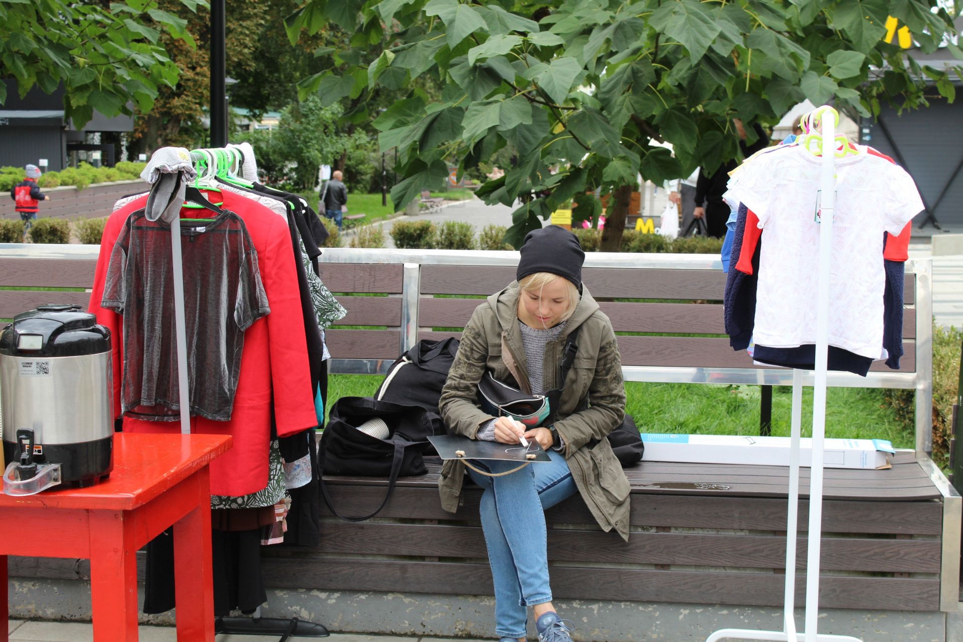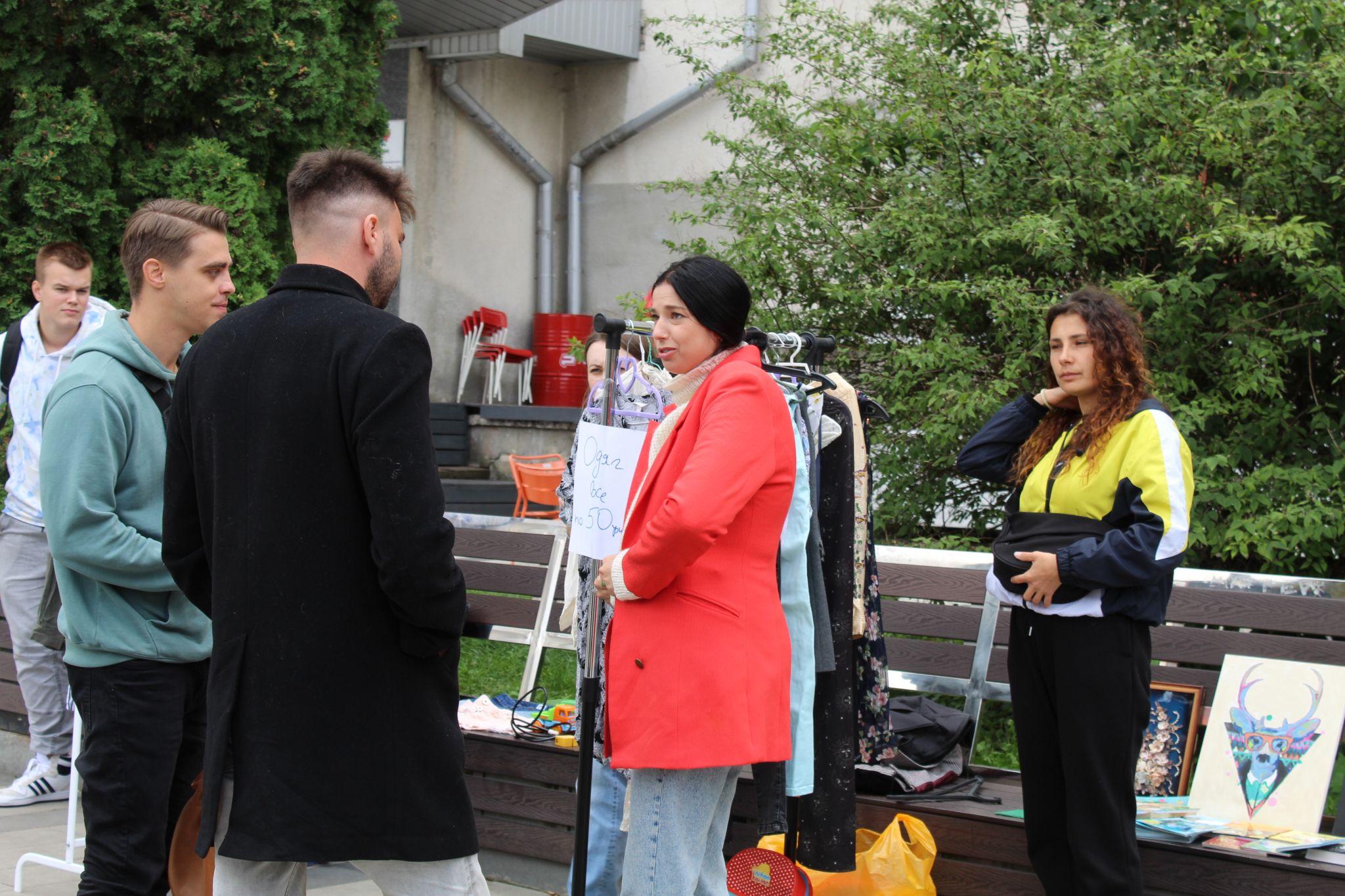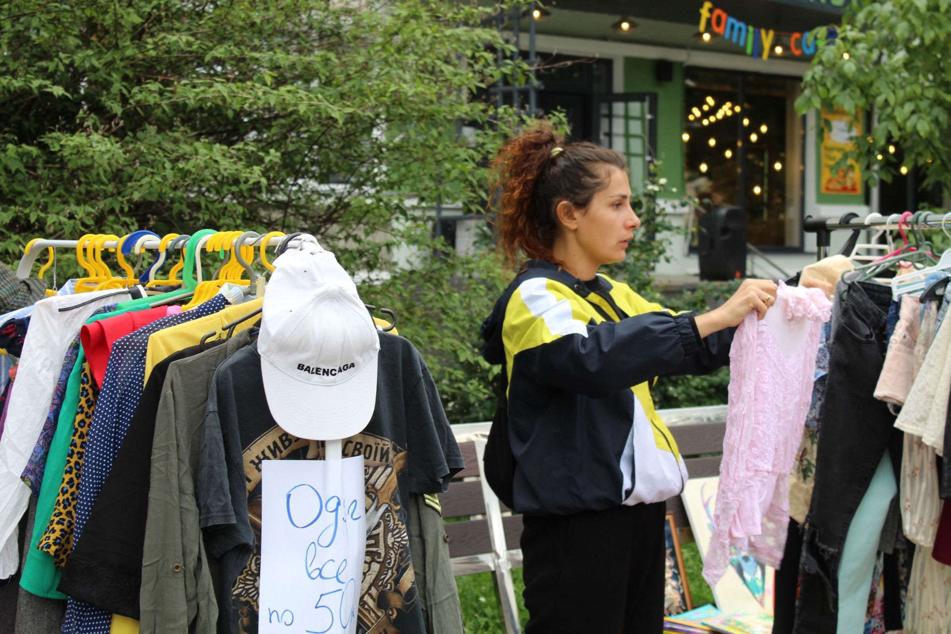 Одна зі співорганізаторок події – Дарця, не пропустила ще жодного так званого гаражного сейлу. Жінка розповідає: свої речі давно продала, тож тепер допомагає решті учасників барахолки: то стійки поставити, то запакувати печиво чи інші солодощі, то розкласти товар, аби виглядав презентабельно.